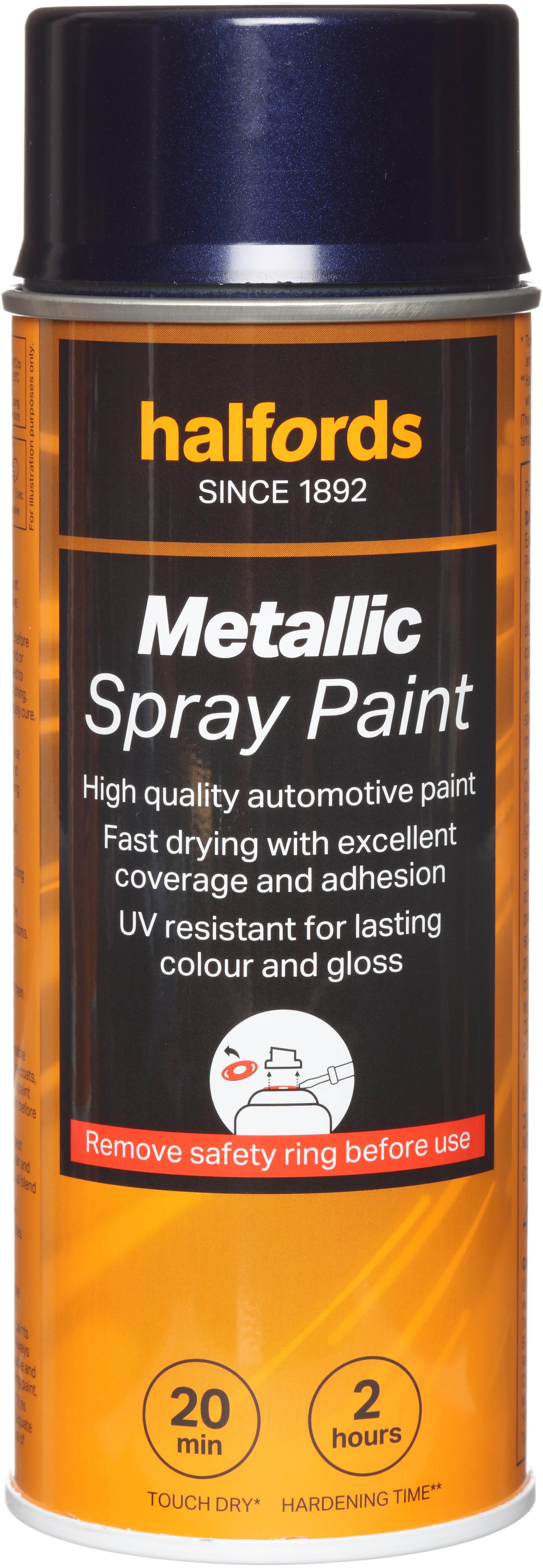 The Halfords Blue Metallic Spray Paint is an automotive-grade spray paint. It’s acrylic-based, and can be used on almost all vehicle finishes as well as steel, aluminium, most plastics, wood & stone.