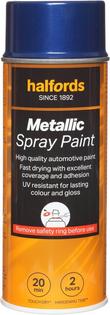 The Halfords Blue Metallic Spray Paint is an automotive-grade spray paint. It’s acrylic-based, and can be used on almost all vehicle finishes as well as steel, aluminium, most plastics, wood & stone.