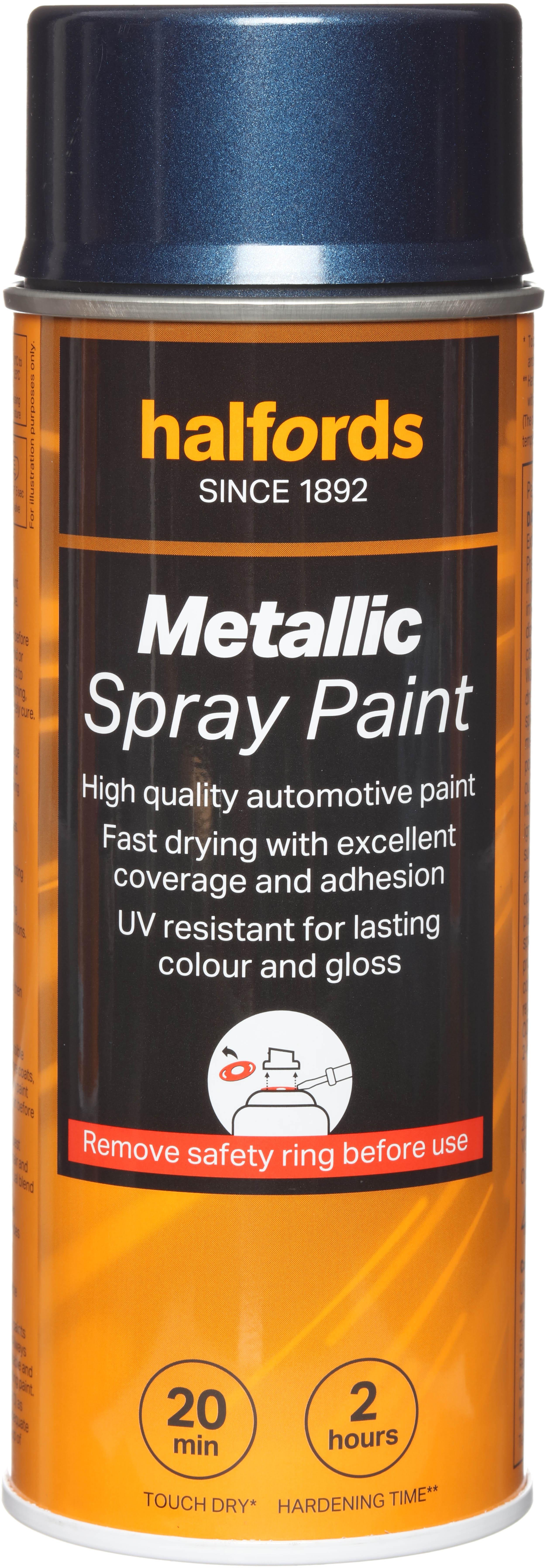 The Halfords Blue Metallic Spray Paint is an automotive-grade spray paint. It’s acrylic-based, and can be used on almost all vehicle finishes as well as steel, aluminium, most plastics, wood & stone.