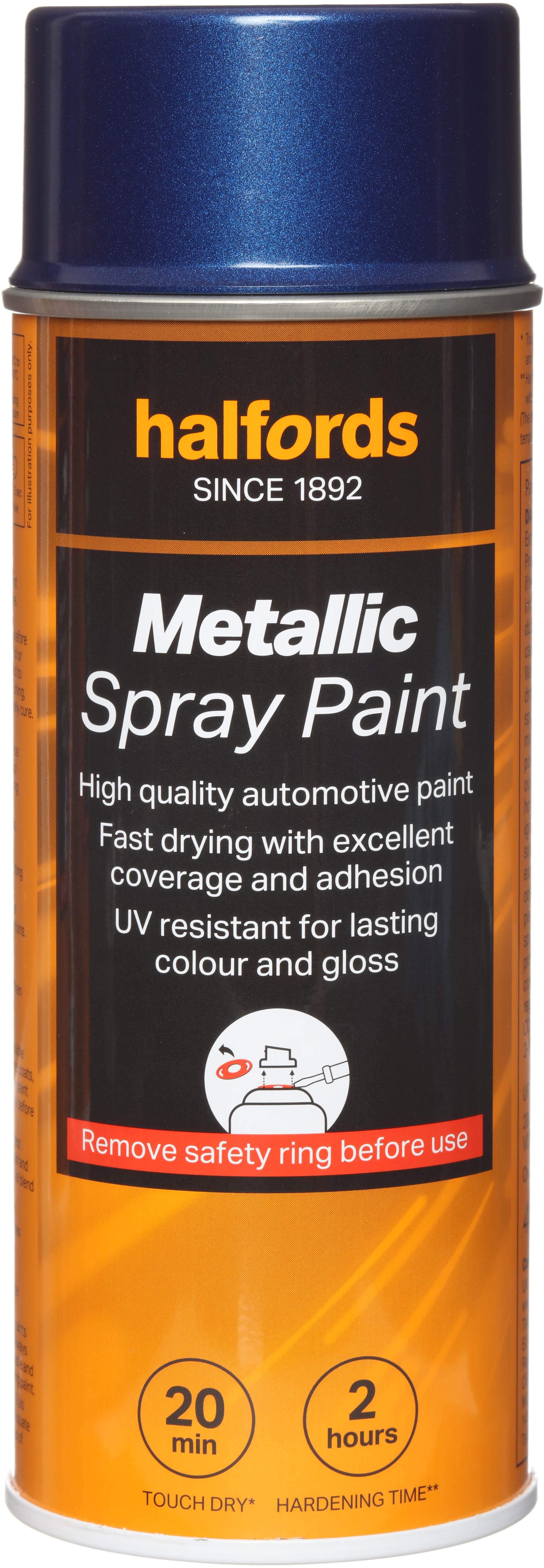 The Halfords Blue Metallic Spray Paint is an automotive-grade spray paint. It’s acrylic-based, and can be used on almost all vehicle finishes as well as steel, aluminium, most plastics, wood & stone.