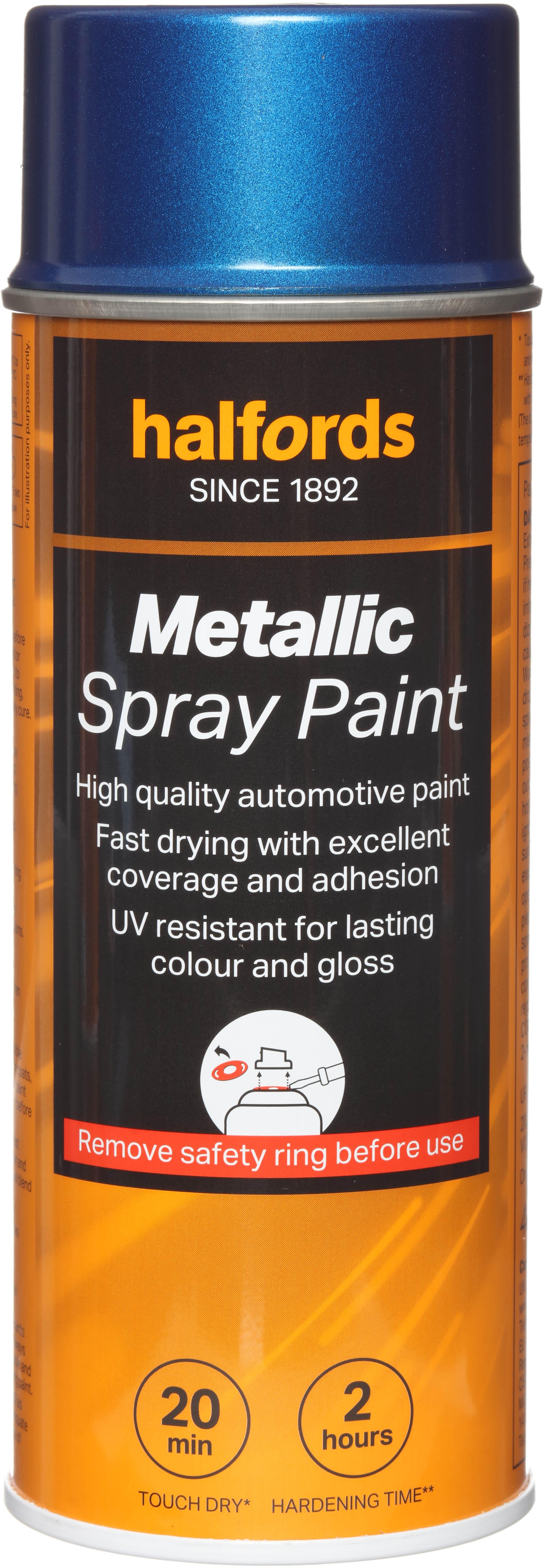 The Halfords Blue Metallic Spray Paint is an automotive-grade spray paint. It’s acrylic-based, and can be used on almost all vehicle finishes as well as steel, aluminium, most plastics, wood & stone.