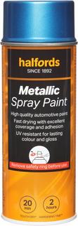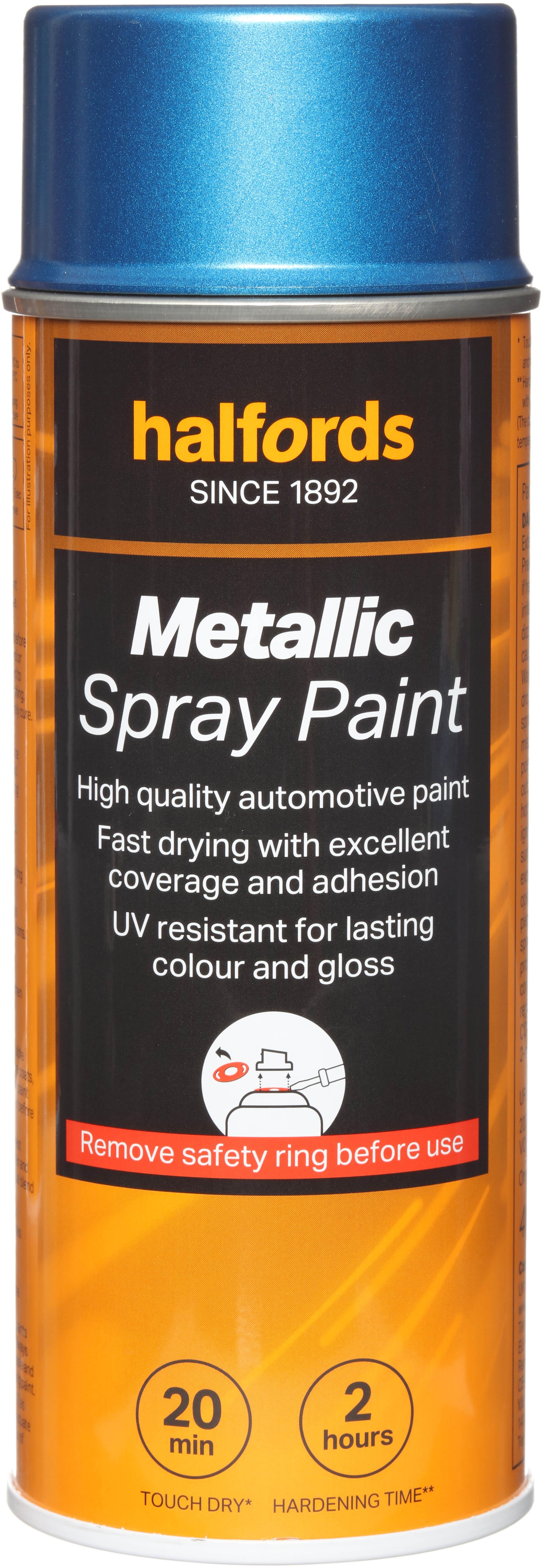 The Halfords Blue Metallic Spray Paint is an automotive-grade spray paint. It’s acrylic-based, and can be used on almost all vehicle finishes as well as steel, aluminium, most plastics, wood & stone.