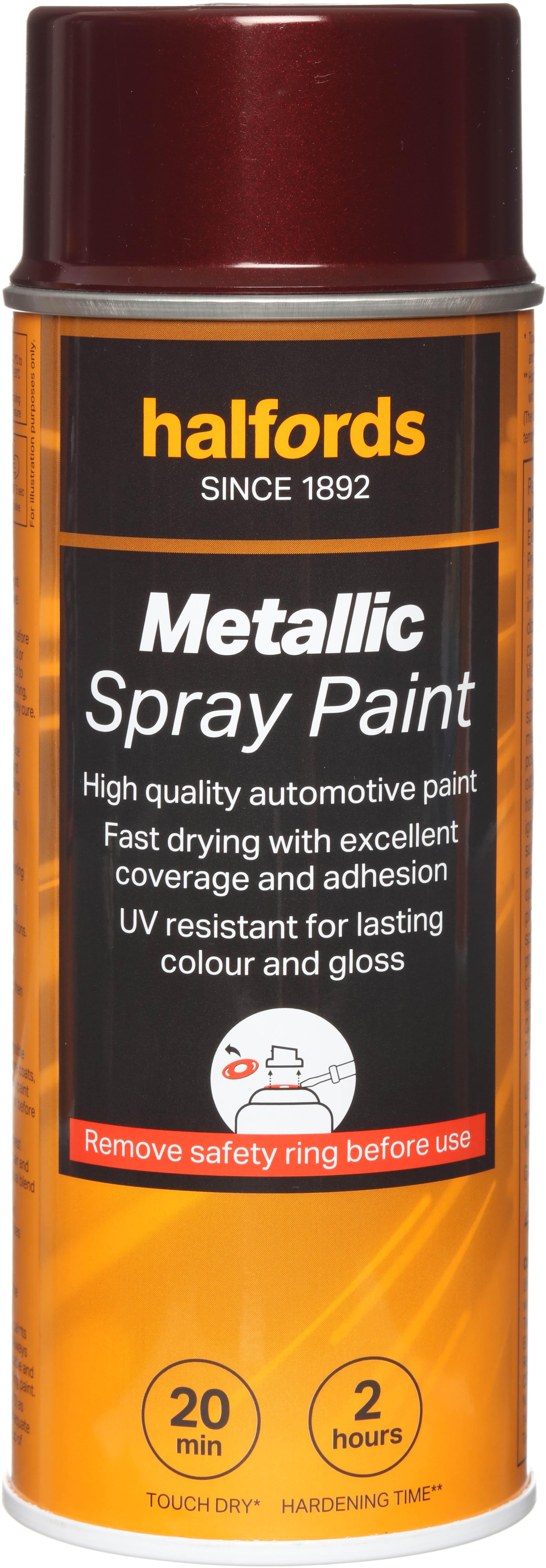 The Halfords Red Metallic Spray Paint is an acrylic-based spray paint, perfect for repairing damage and respraying car panels. It can also be used on aluminium, steel, wood, stone, and most plastics with an appropriate primer.