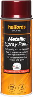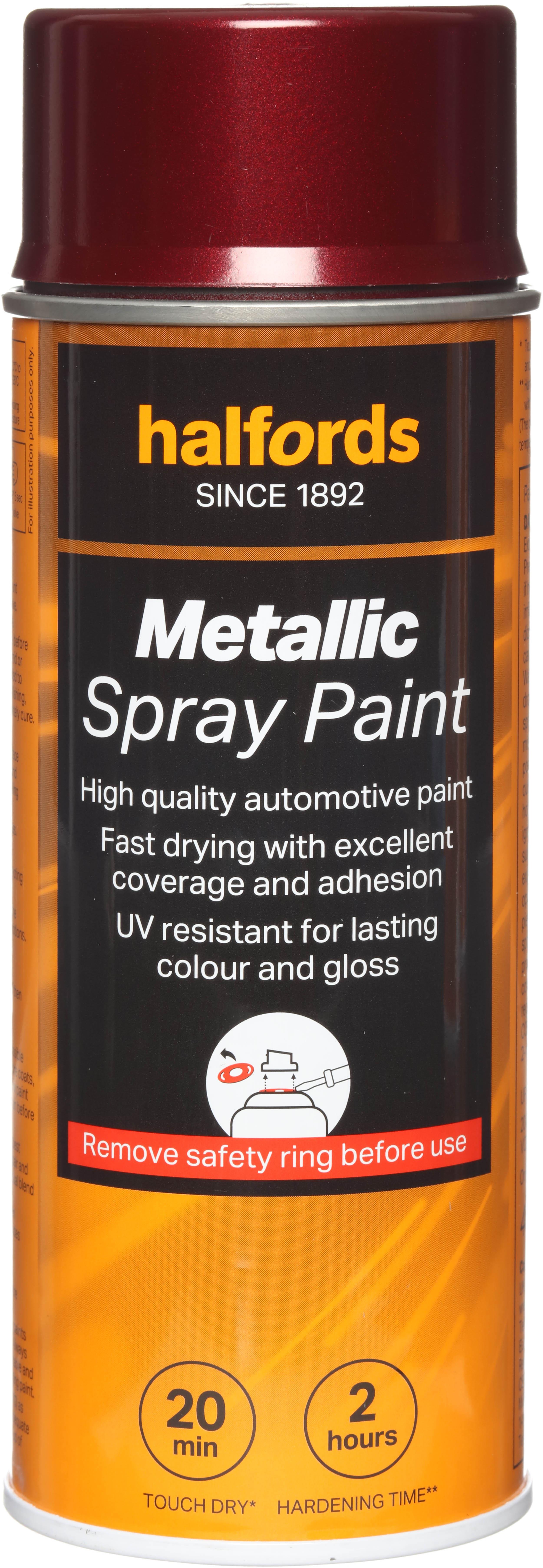 The Halfords Red Metallic Spray Paint is an acrylic-based spray paint, perfect for repairing damage and respraying car panels. It can also be used on aluminium, steel, wood, stone, and most plastics with an appropriate primer.
