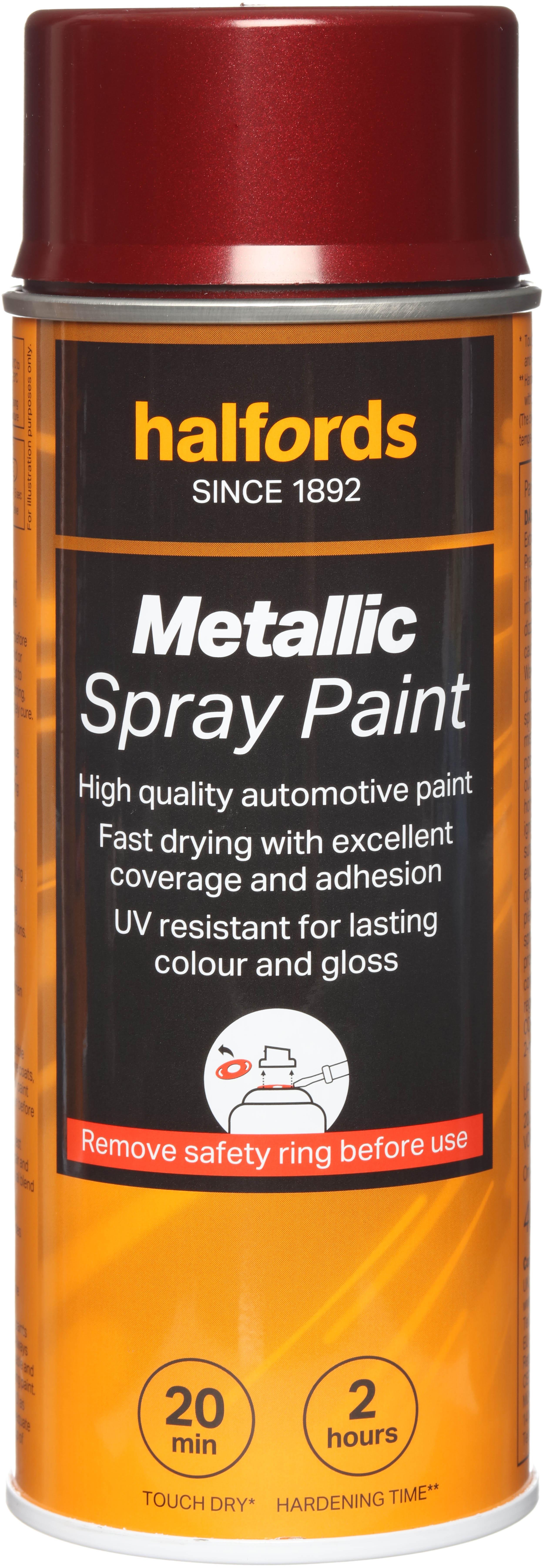 The Halfords Red Metallic Spray Paint is an acrylic-based spray paint, perfect for repairing damage and respraying car panels. It can also be used on aluminium, steel, wood, stone, and most plastics with an appropriate primer.