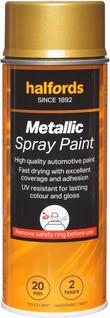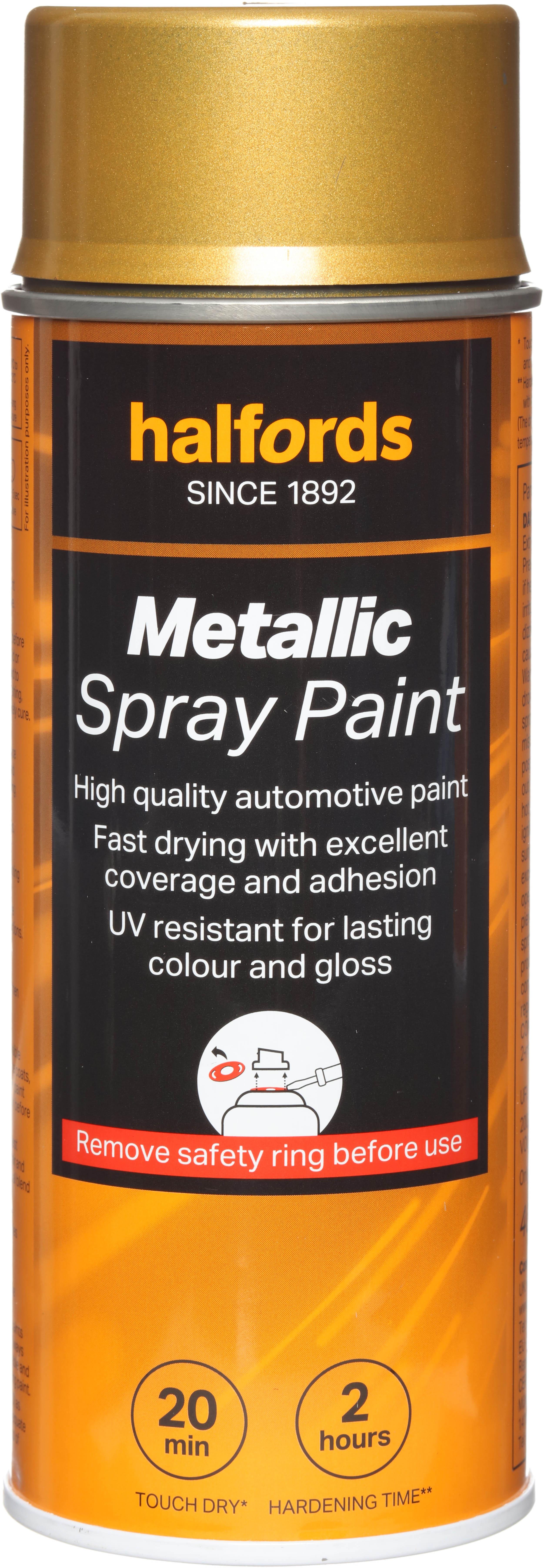 The Halfords Gold Metallic Spray Paint is an automotive-grade spray paint. It’s acrylic-based, and can be used on almost all vehicle finishes as well as steel, aluminium, most plastics, wood & stone.