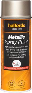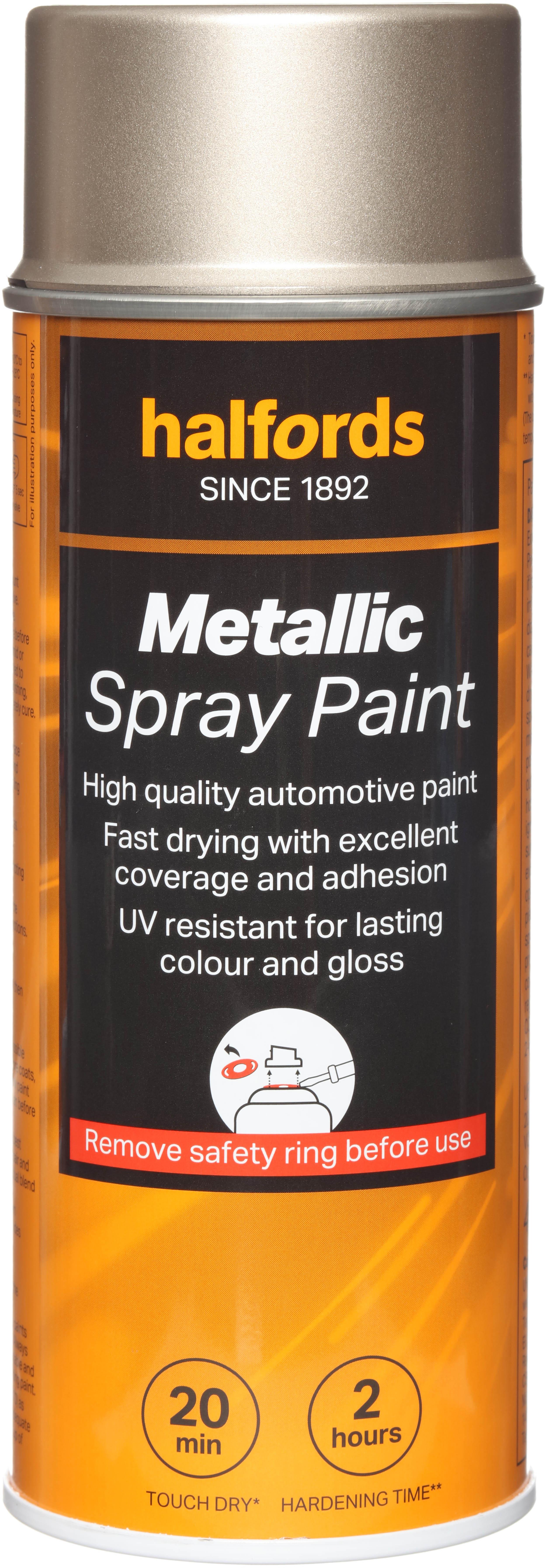 The Halfords Gold Metallic Spray Paint is an automotive-grade spray paint. It’s acrylic-based, and can be used on almost all vehicle finishes as well as steel, aluminium, most plastics, wood & stone.