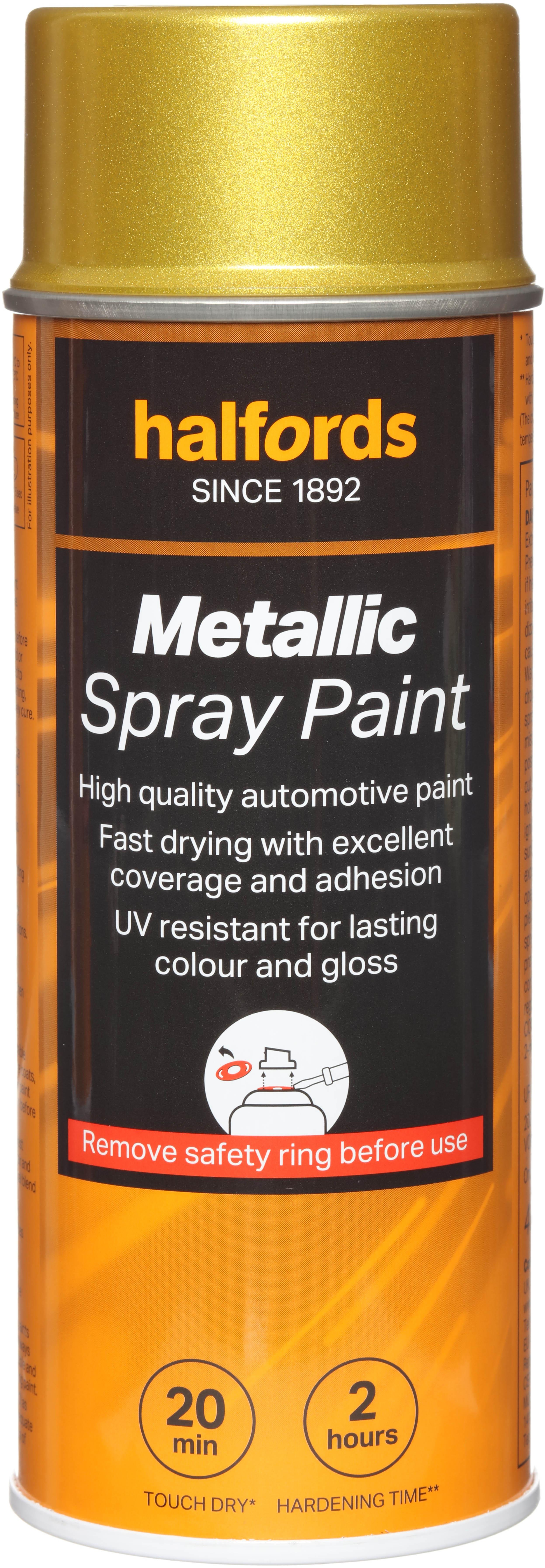 The Halfords Gold Metallic Spray Paint is an automotive-grade spray paint. It’s acrylic-based, and can be used on almost all vehicle finishes as well as steel, aluminium, most plastics, wood & stone.