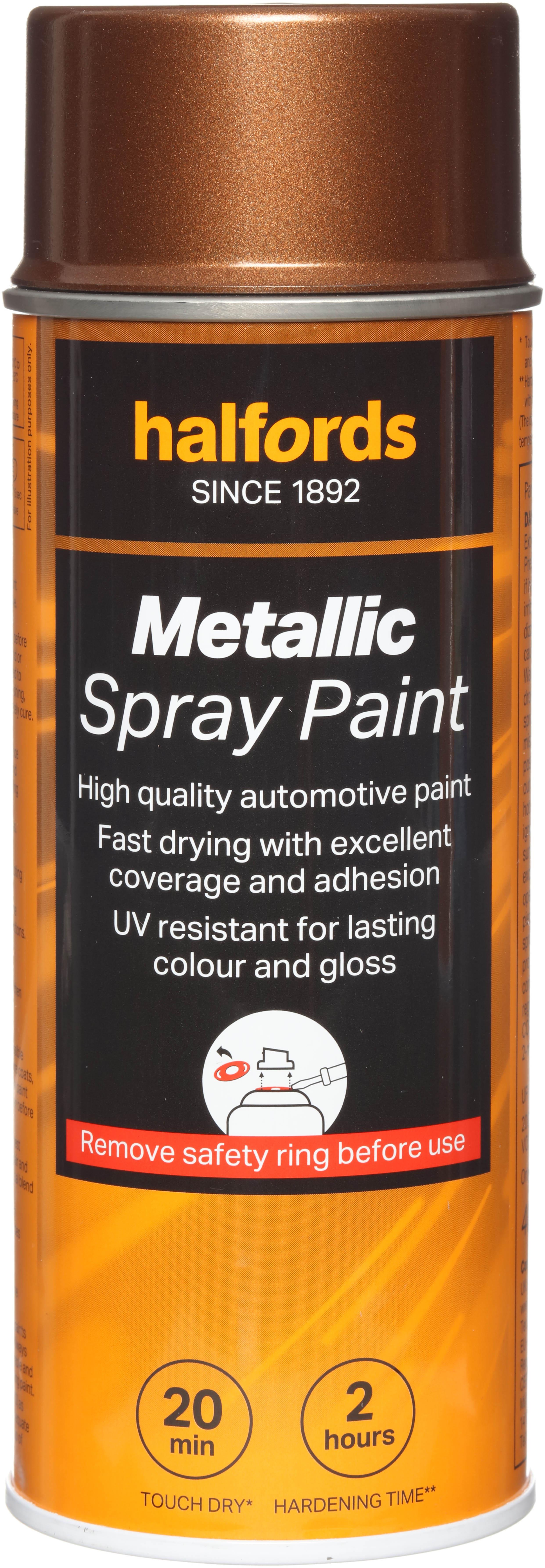 The Halfords Brown Metallic Spray Paint is a multi-use automotive-grade spray paint, which can be safely used on surfaces like steel, aluminium, wood, stone, and most plastics with the right primer.