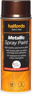 The Halfords Brown Metallic Spray Paint is a multi-use automotive-grade spray paint, which can be safely used on surfaces like steel, aluminium, wood, stone, and most plastics with the right primer.