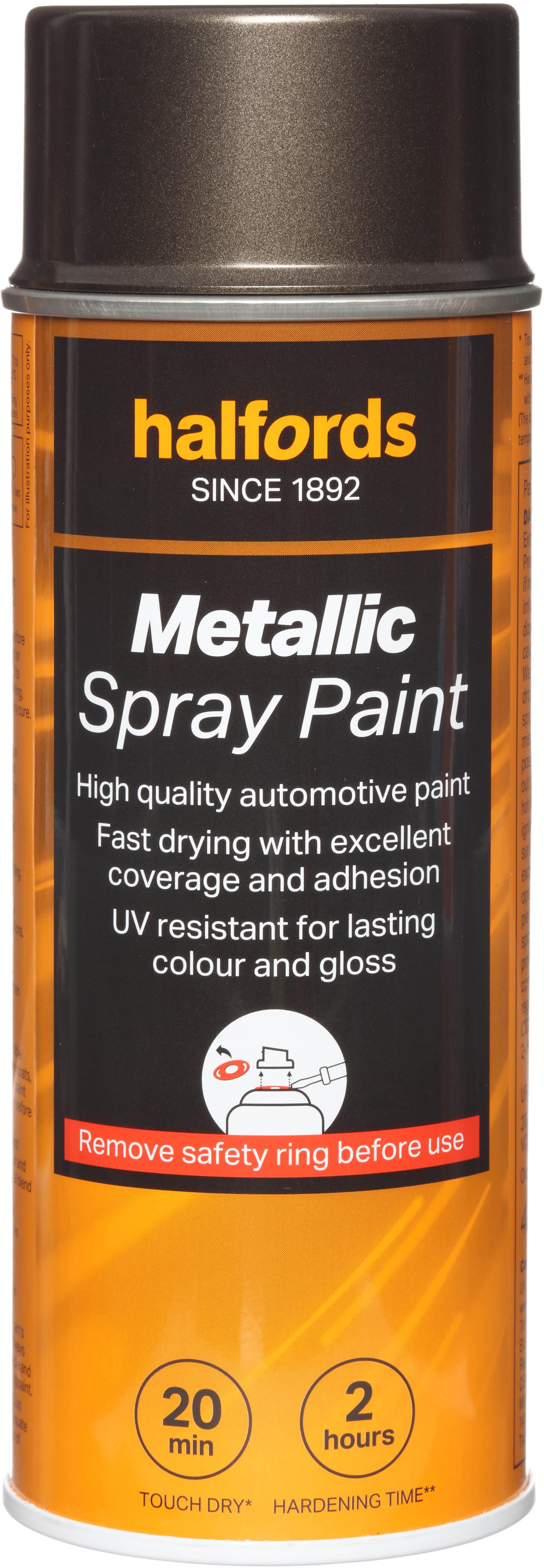 The Halfords Brown Metallic Spray Paint is a multi-use automotive-grade spray paint, which can be safely used on surfaces like steel, aluminium, wood, stone, and most plastics with the right primer.
