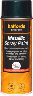 The Halfords Green Metallic Spray Paint is an automotive-grade spray paint. It’s acrylic-based, and can be used on almost all vehicle finishes as well as steel, aluminium, most plastics, wood & stone.