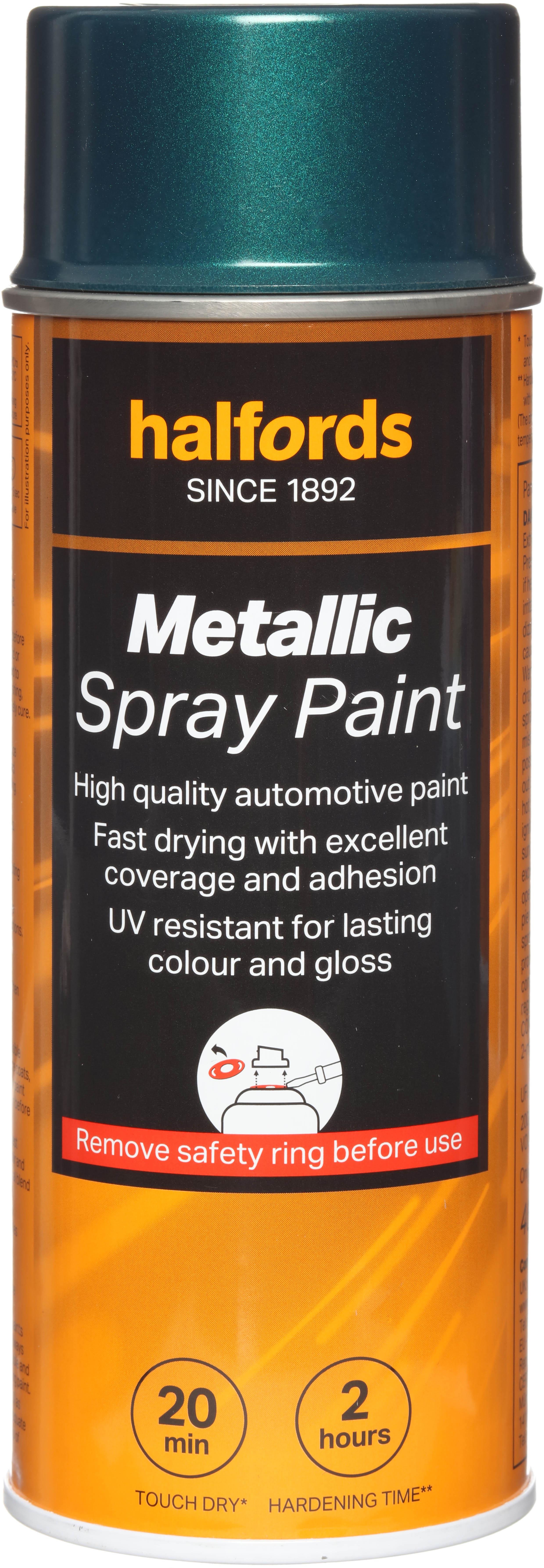 The Halfords Green Metallic Spray Paint is an automotive-grade spray paint. It’s acrylic-based, and can be used on almost all vehicle finishes as well as steel, aluminium, most plastics, wood & stone.