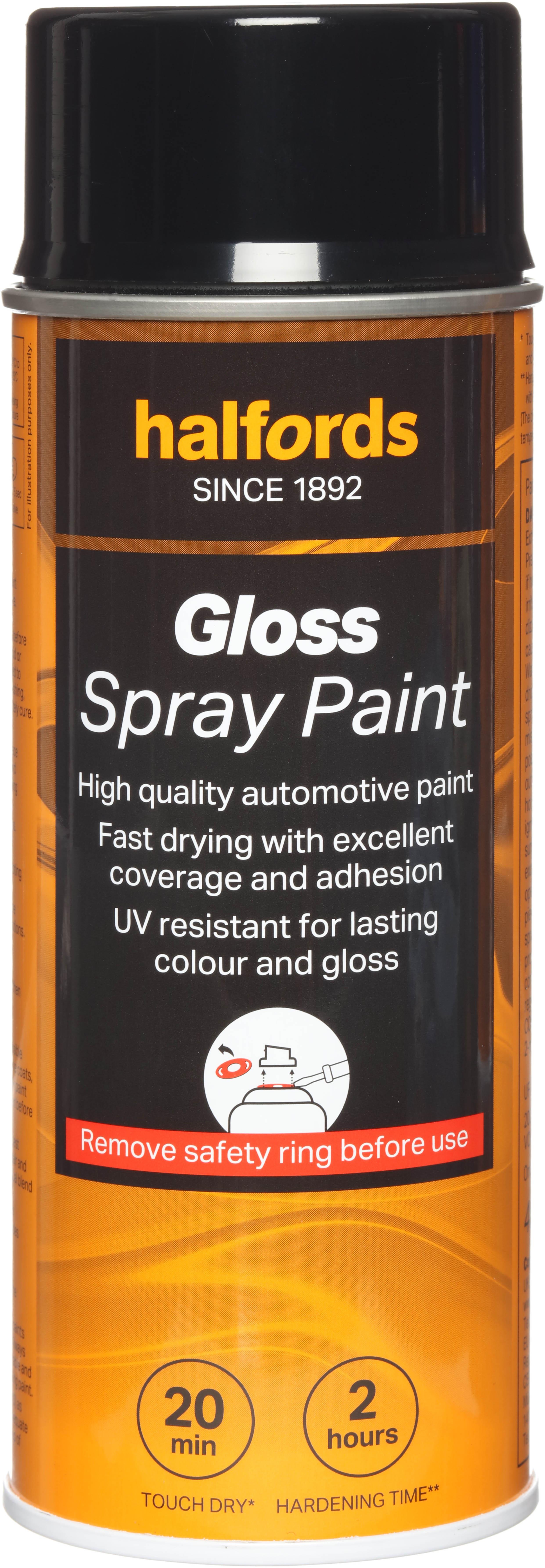 The Halfords Black Gloss Spray Paint is an automotive-grade spray paint. It’s acrylic-based, and can be used on almost all vehicle finishes as well as steel, aluminium, most plastics, wood & stone.