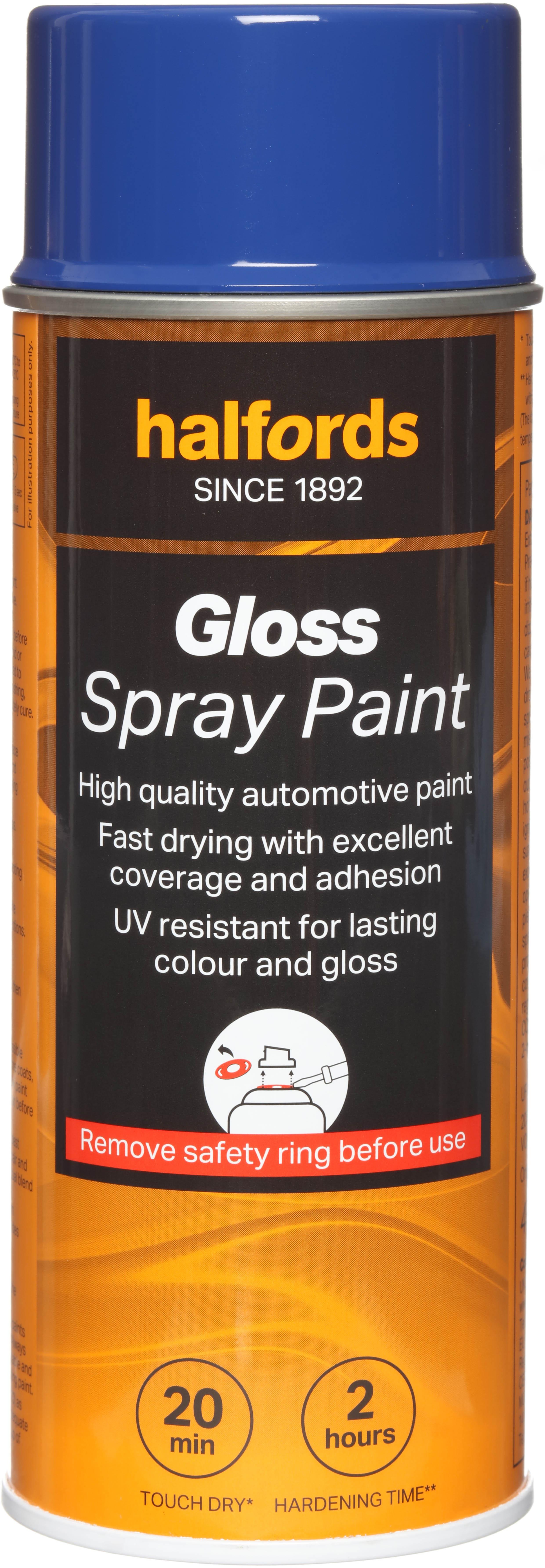 The Halfords Blue Gloss Spray Paint is an automotive-grade spray paint. It’s acrylic-based, and can be used on almost all vehicle finishes as well as steel, aluminium, most plastics, wood & stone.