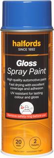 The Halfords Blue Gloss Spray Paint is an automotive-grade spray paint. It’s acrylic-based, and can be used on almost all vehicle finishes as well as steel, aluminium, most plastics, wood & stone.