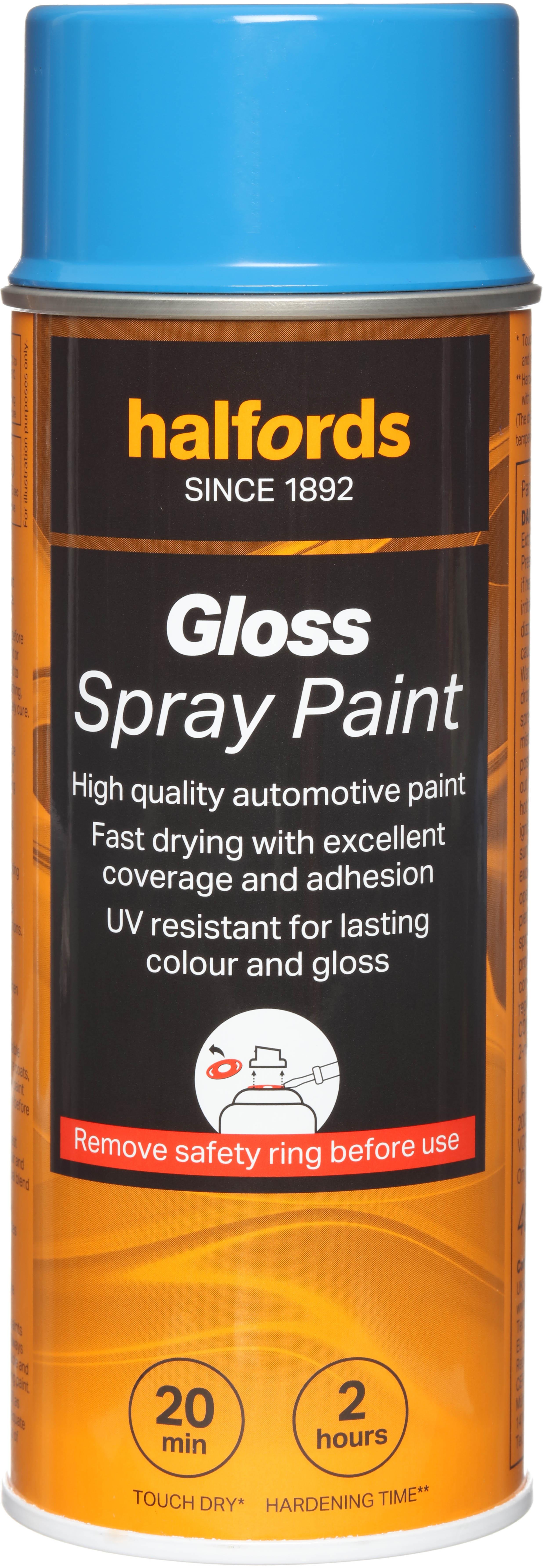 The Halfords Blue Gloss Spray Paint is an automotive-grade spray paint. It’s acrylic-based, and can be used on almost all vehicle finishes as well as steel, aluminium, most plastics, wood & stone.