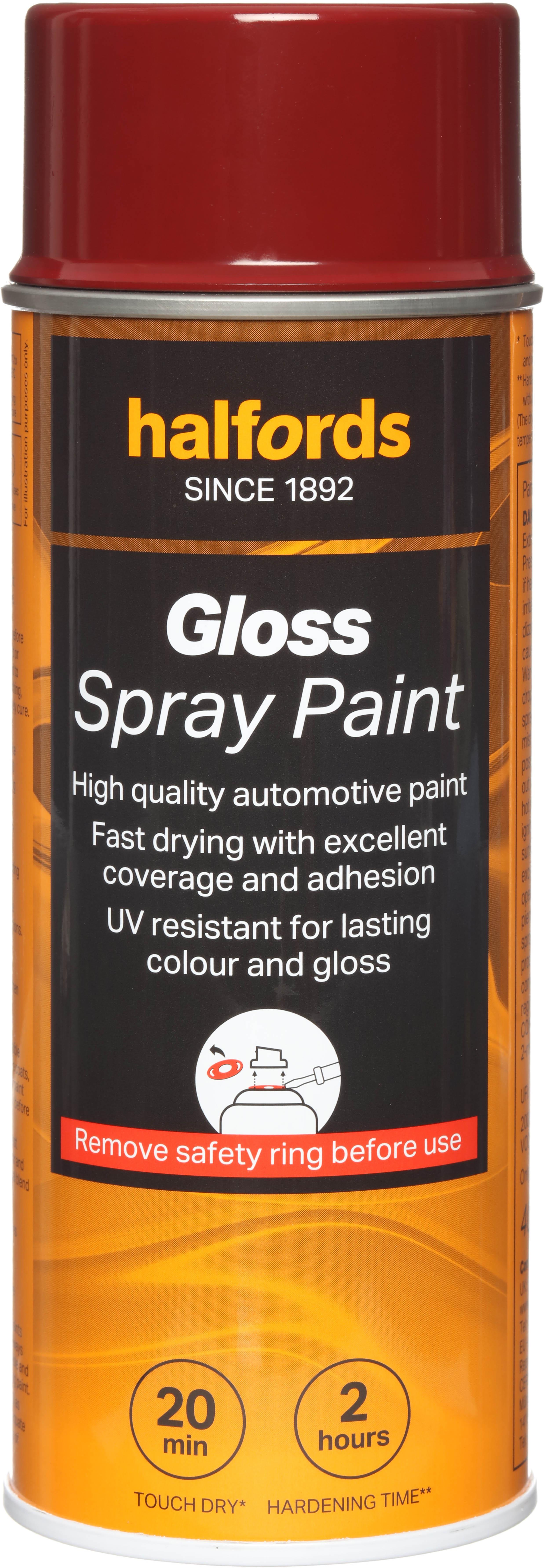 The Halfords Red Gloss Spray Paint is a multi-use automotive-grade spray paint, which can be safely used on surfaces like steel, aluminium, wood, stone, and most plastics with the right primer.