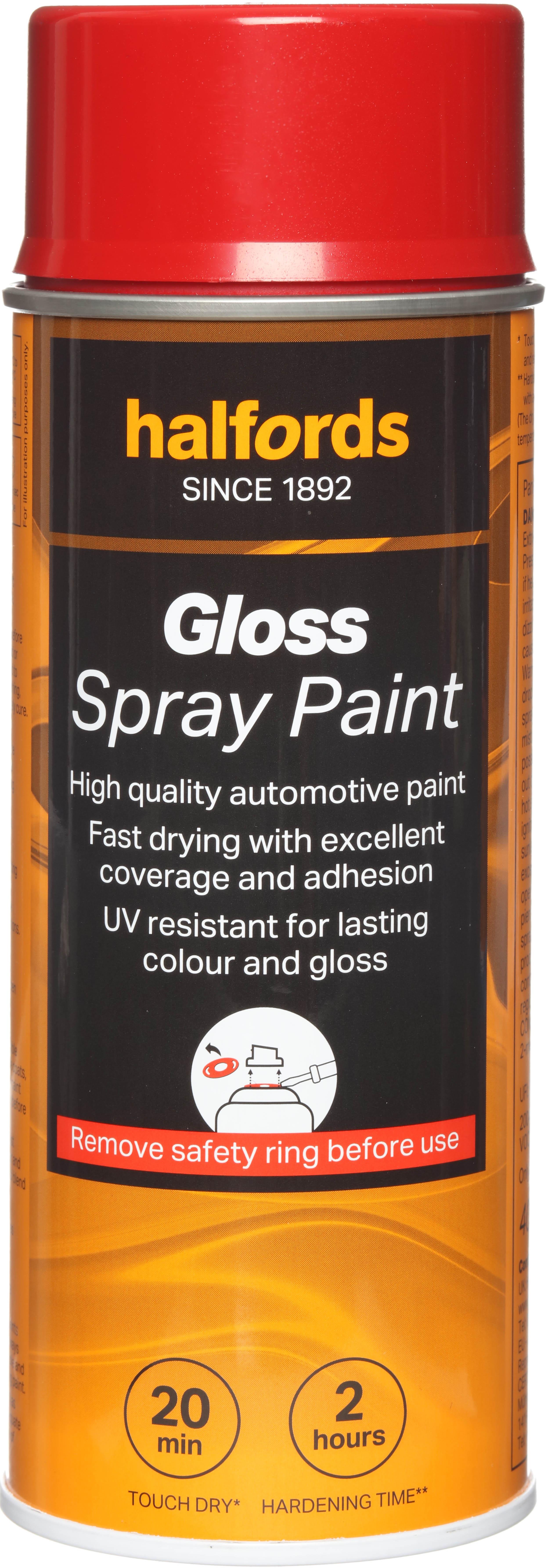 The Halfords Red Gloss Spray Paint is a multi-use automotive-grade spray paint, which can be safely used on surfaces like steel, aluminium, wood, stone, and most plastics with the right primer.