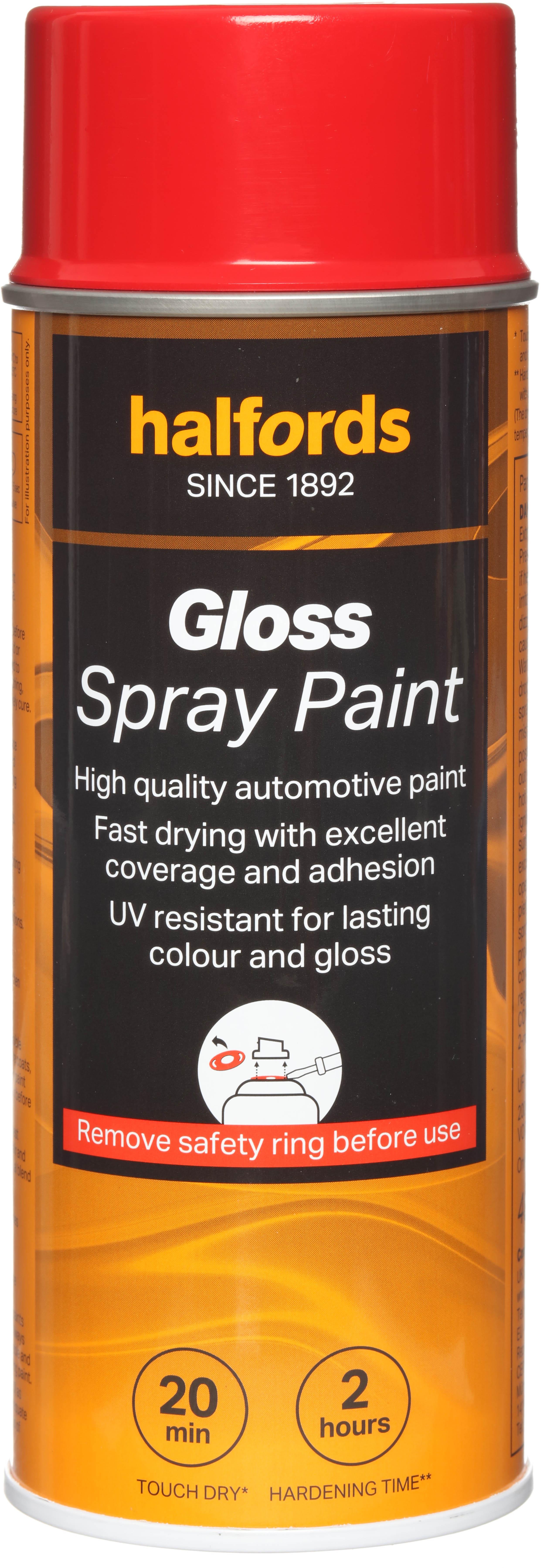 The Halfords Red Gloss Spray Paint is a multi-use automotive-grade spray paint, which can be safely used on surfaces like steel, aluminium, wood, stone, and most plastics with the right primer.