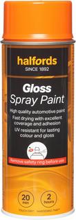 The Halfords Orange Gloss Spray Paint is an automotive-grade spray paint. It’s acrylic-based, and can be used on almost all vehicle finishes as well as steel, aluminium, most plastics, wood & stone.