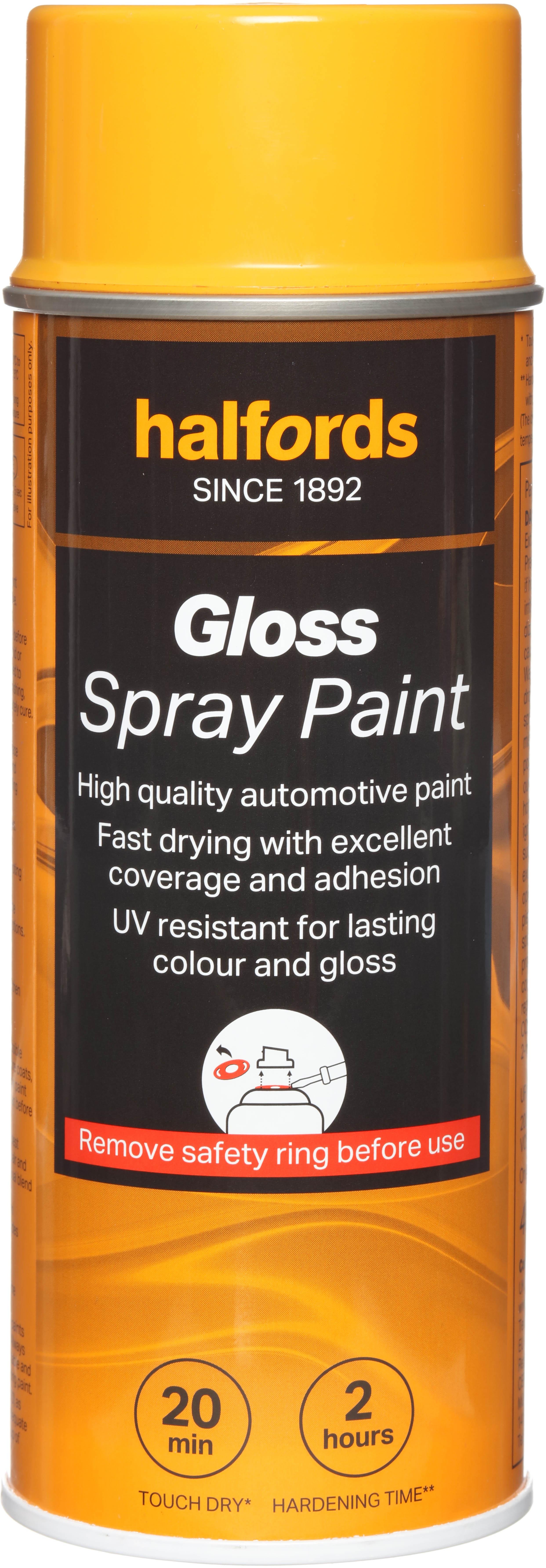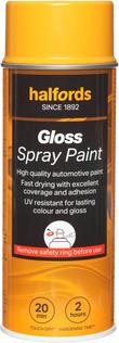 The Halfords Yellow Gloss Spray Paint is an automotive-grade spray paint. It’s acrylic-based, and can be used on almost all vehicle finishes as well as steel, aluminium, most plastics, wood & stone.