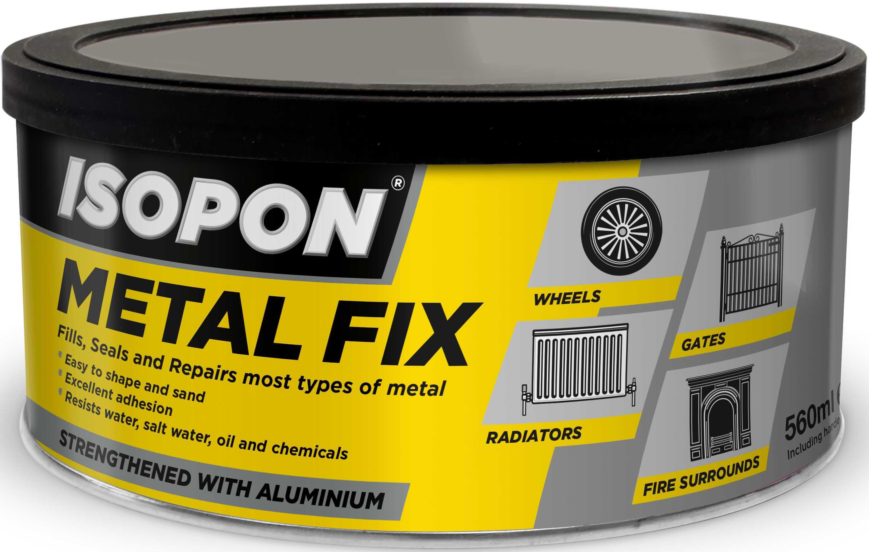 ISOPON Metal Fix is an all purpose filler, compatible with wood, masonry, metal, and concreate repairs. This 2 part polyester paste contains aluminium for extra toughness, offering excellent adhesion and resistance to temperatures up to 120C.