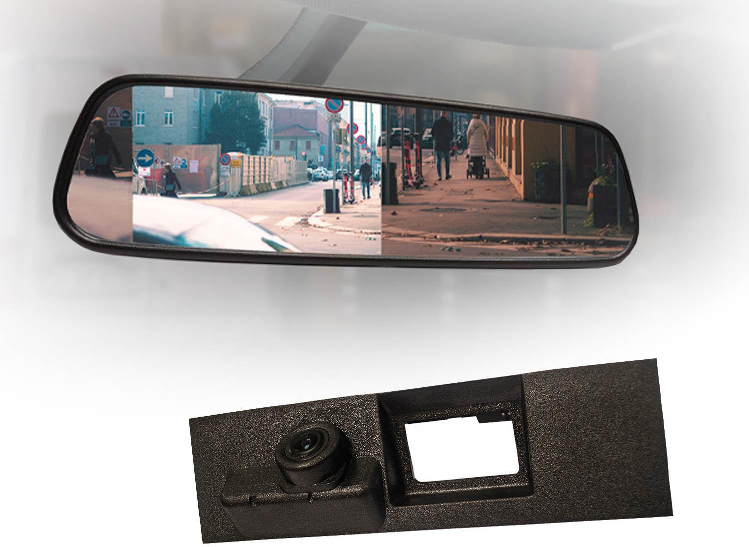 The mirror monitor clips over the existing interior mirror and displays the rear camera image on the built in 4.3" display.