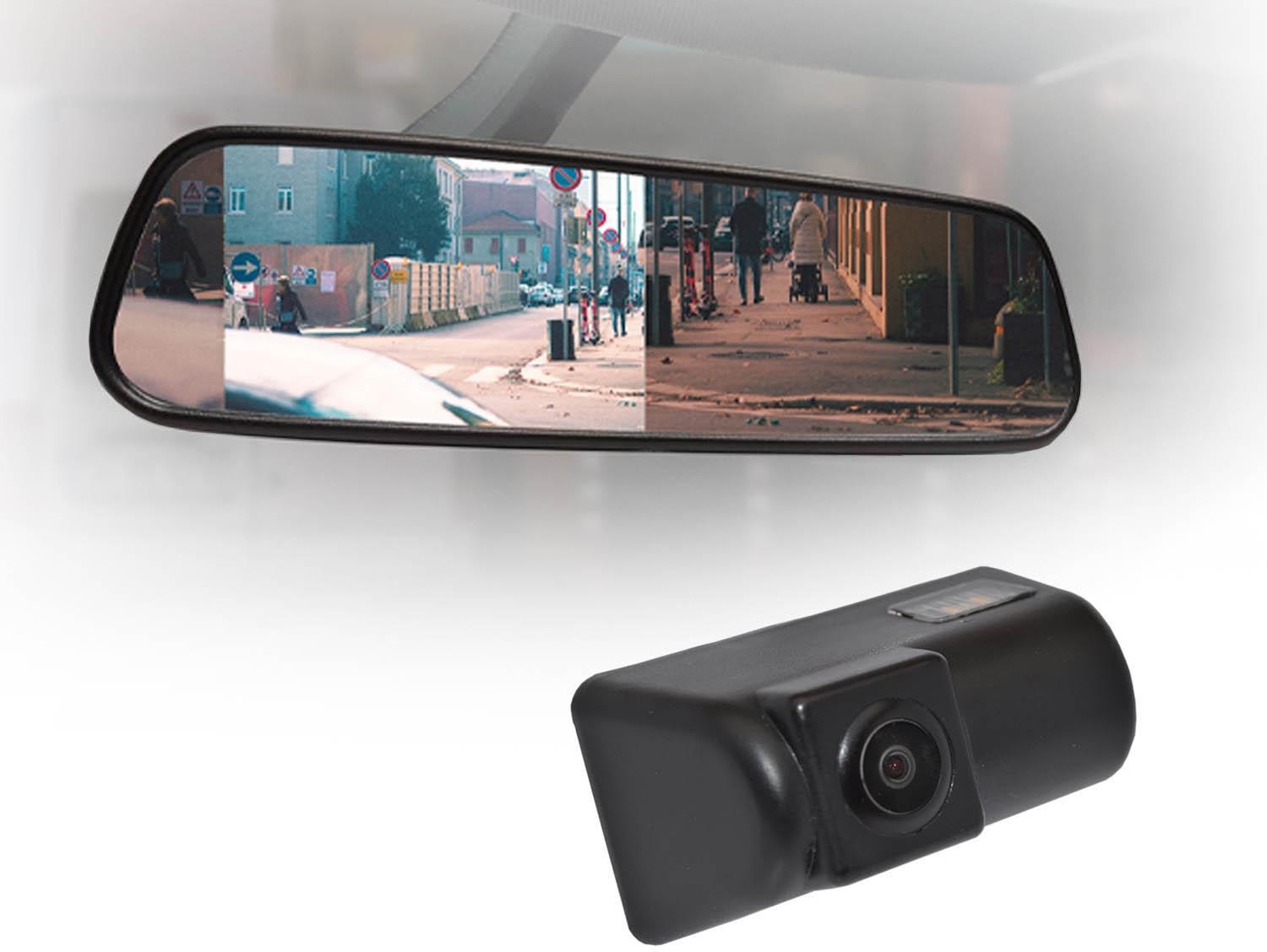 The mirror monitor clips over the existing interior mirror and displays the rear camera image on the built in 4.3" display.