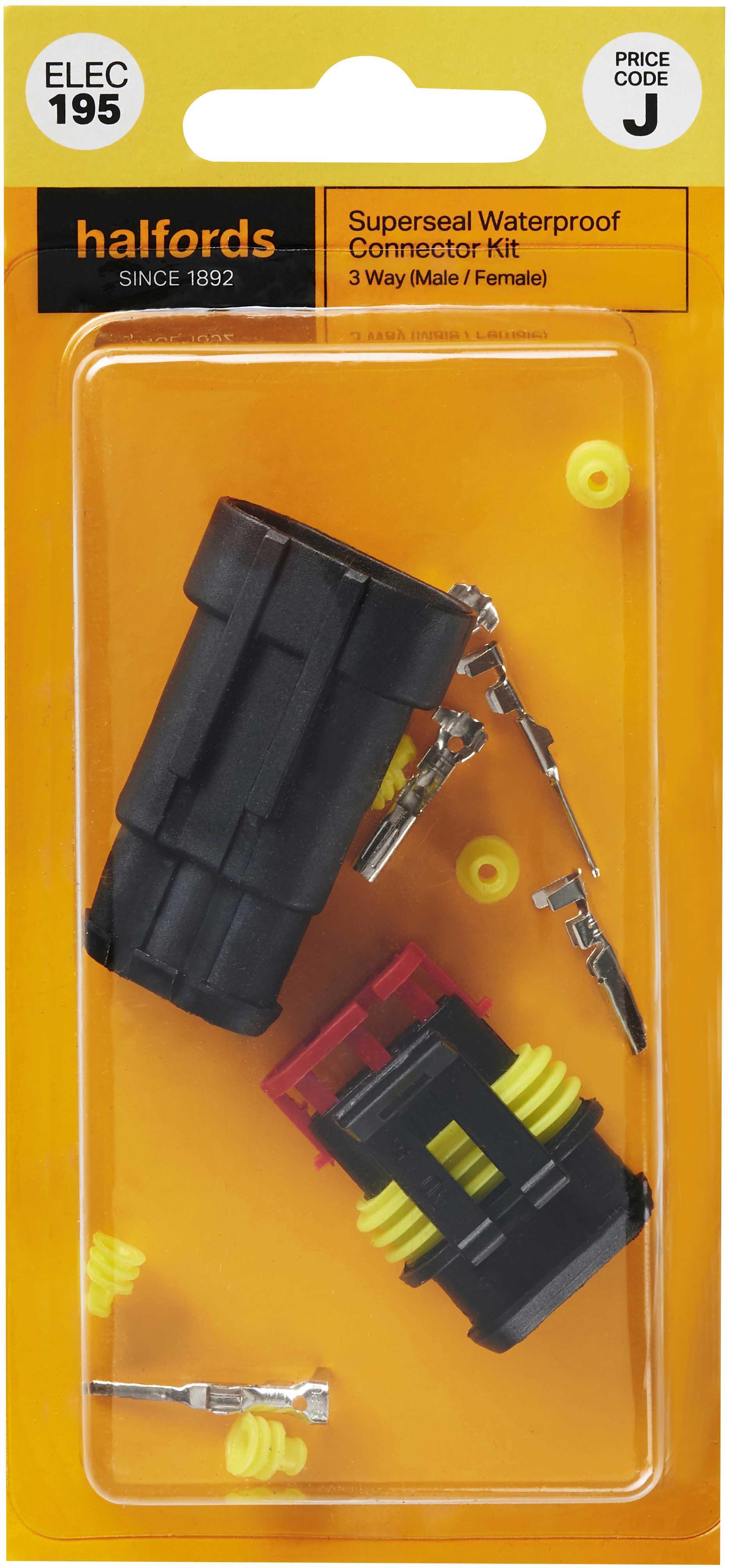 The Halfords 3 Way Superseal Kit and Housing is suitable for adding or replacing a waterproof electrical connector