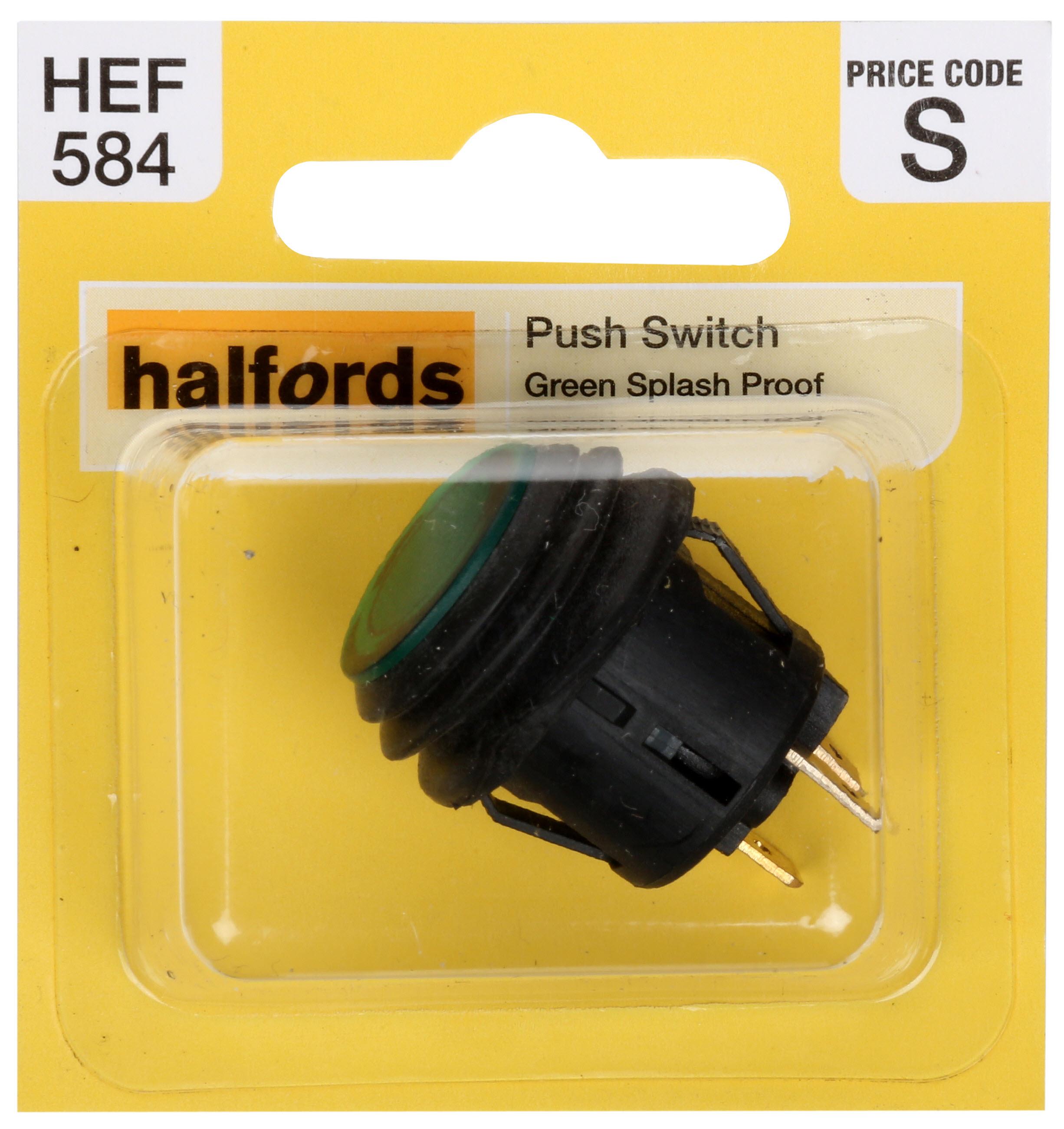 Halfords Push Switch On/Off Splash Proof Green (ELEC245)