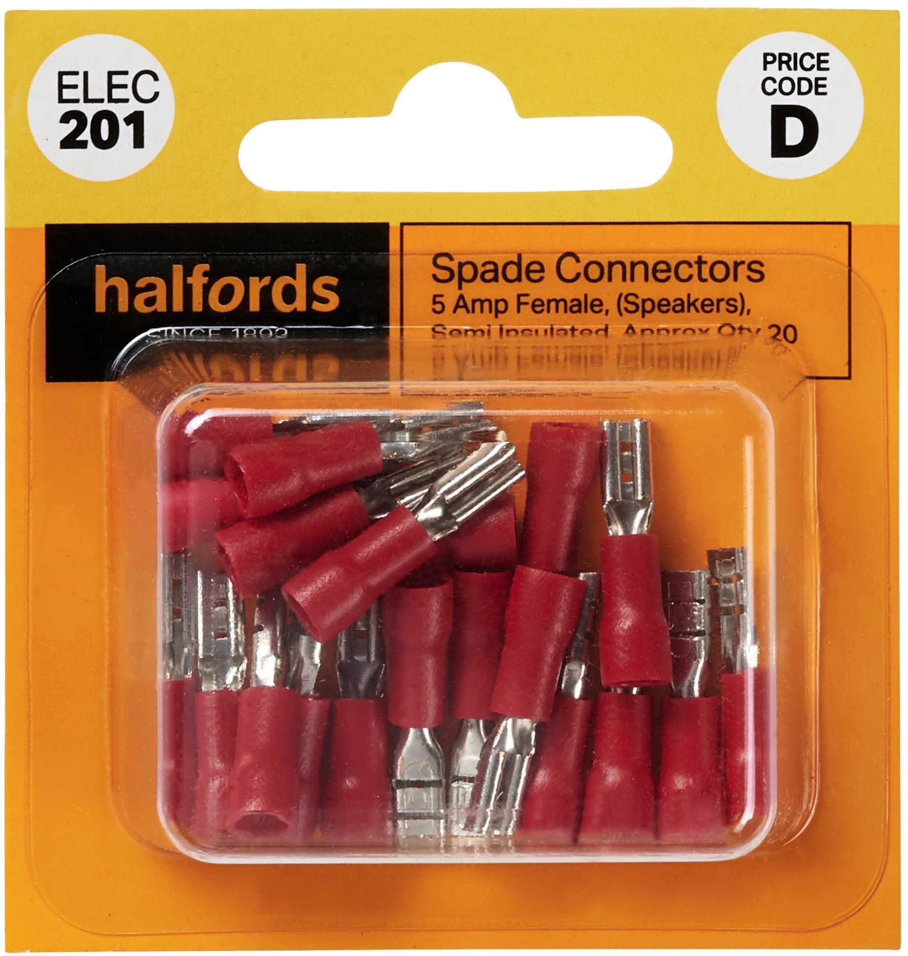 Halfords Spade Connectors .110 speaker 5 Amp Female S/insulated (ELEC201)