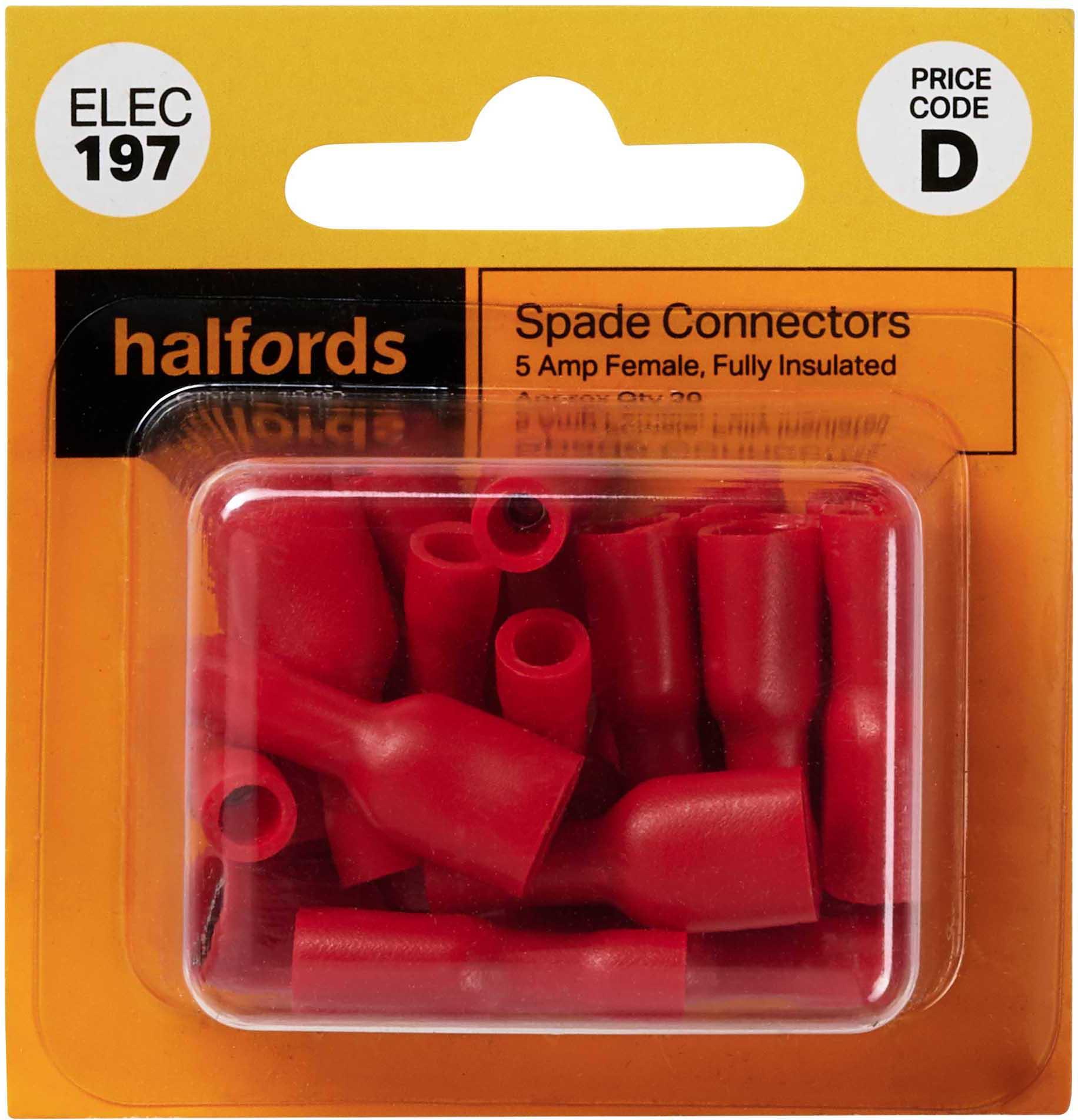 Halfords Spade Connectors 5 Amp Female Fully-insulated (ELEC197)