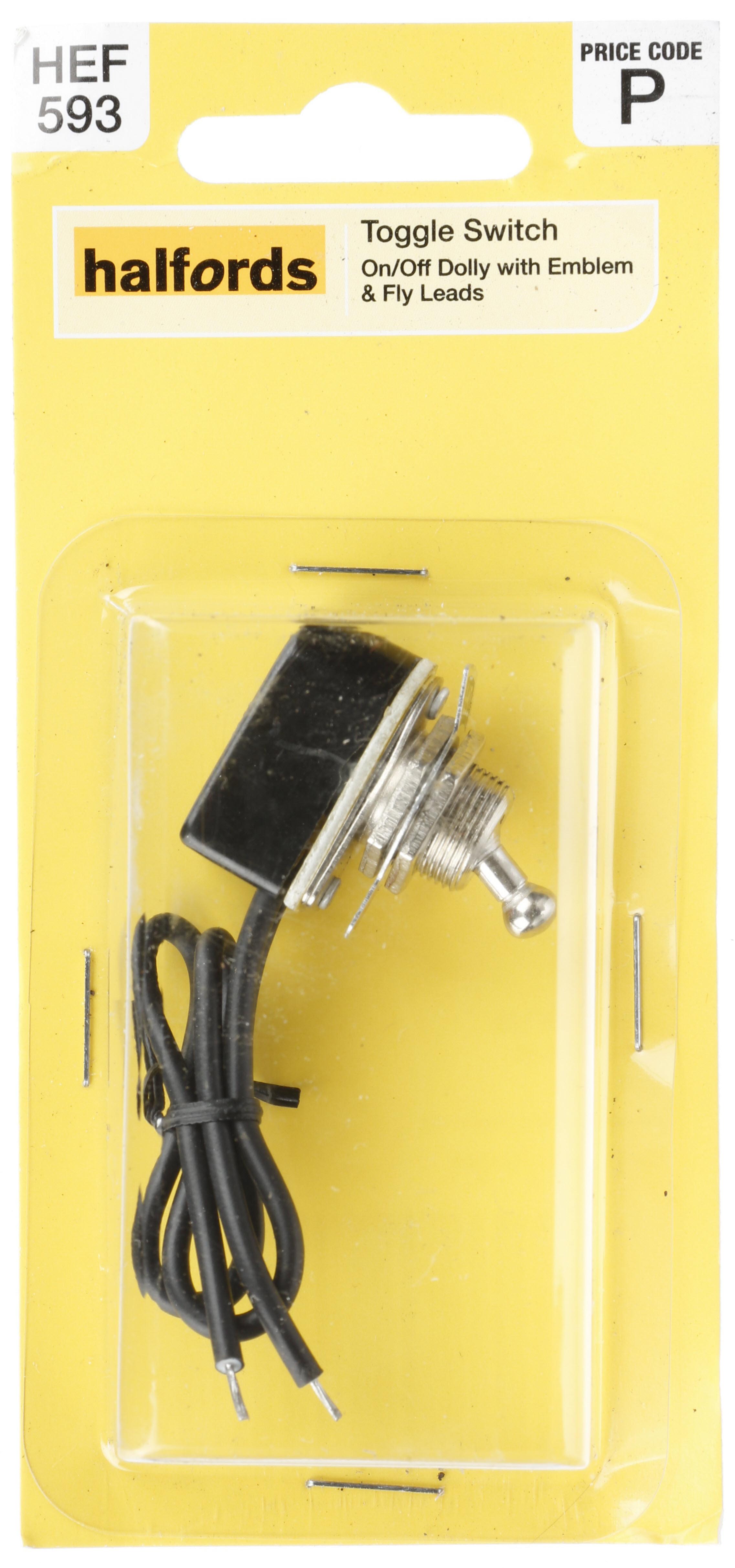 Halfords Toggle Switch On/Off Metal Non Illuminated (ELEC254) Dolly Metal Toggle with Emblem, Fly Leads and On/Off Markers. Quantity 1.