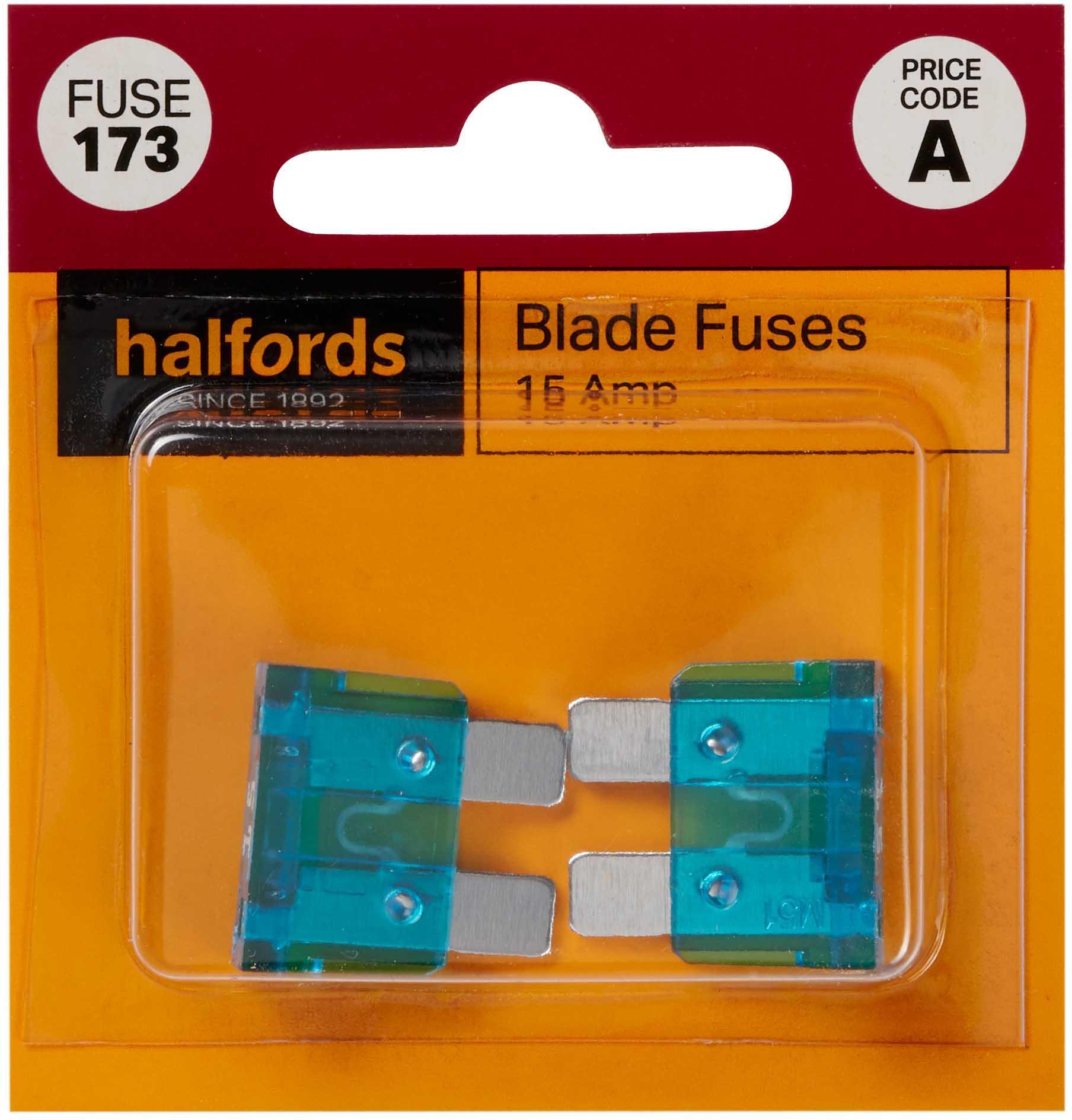 The Halfords Blade Fuses 15 Amp (FUSE173) Pack contains 2 x 15 Amp blade fuses, 12v & 24v. Both come as 19mm x 19mm.