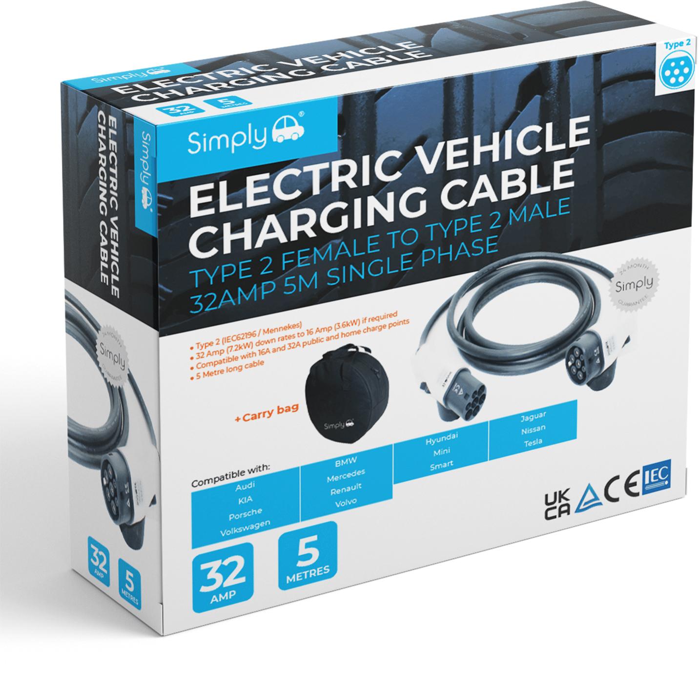 Simply EV Type 2 to Type 2 32A 5M Single Phase Charging Cable