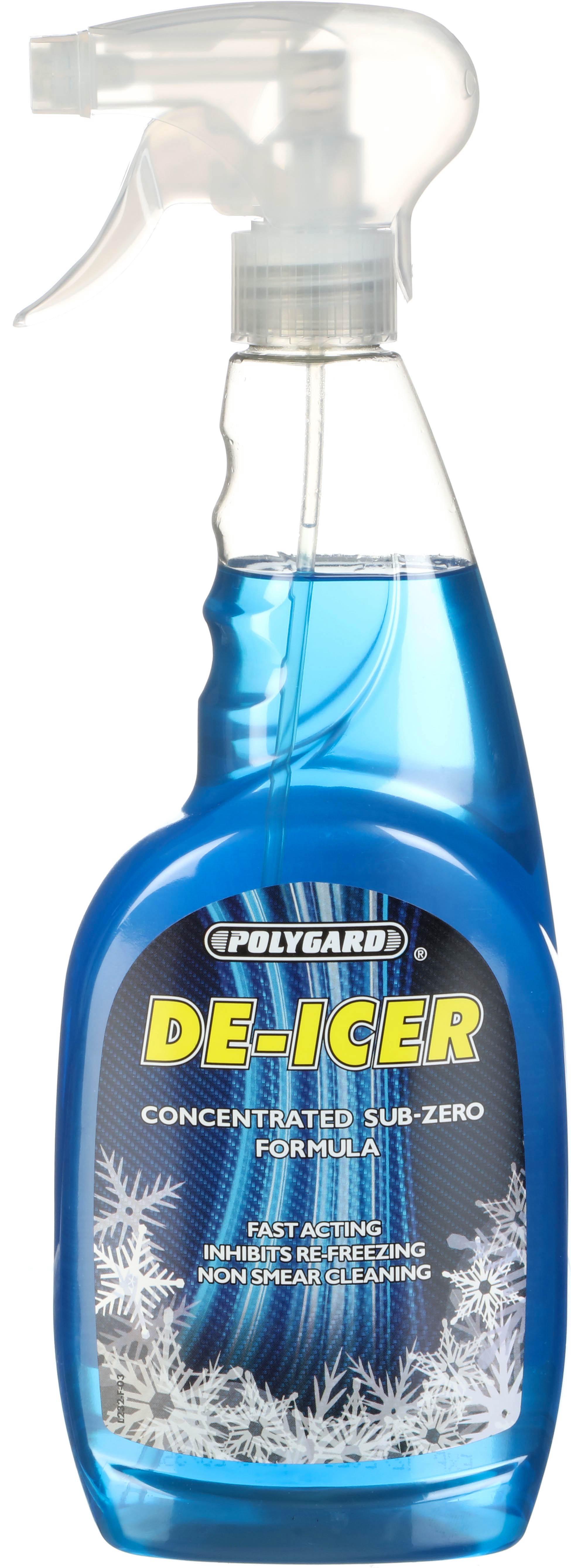 Polygard De-Icer is a high quality, concentrated formula that rapidly removes frost from glass and reduces re-freezing. It inhibits re-freeze down to -20°C and cleans away traffic film, grease and grime with an anti-smear finish.