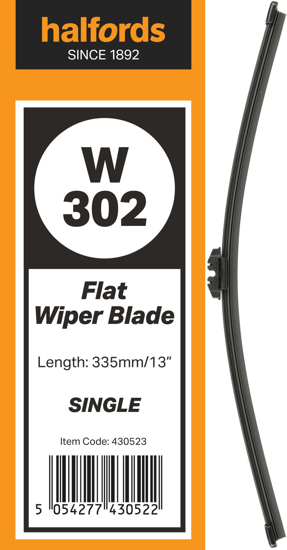 The Halfords Rear Flat Wiper W302 rear single flat wiper blade features a technological tensioned metal strip for precise uniform distribution of pressure along the wiping edge.
