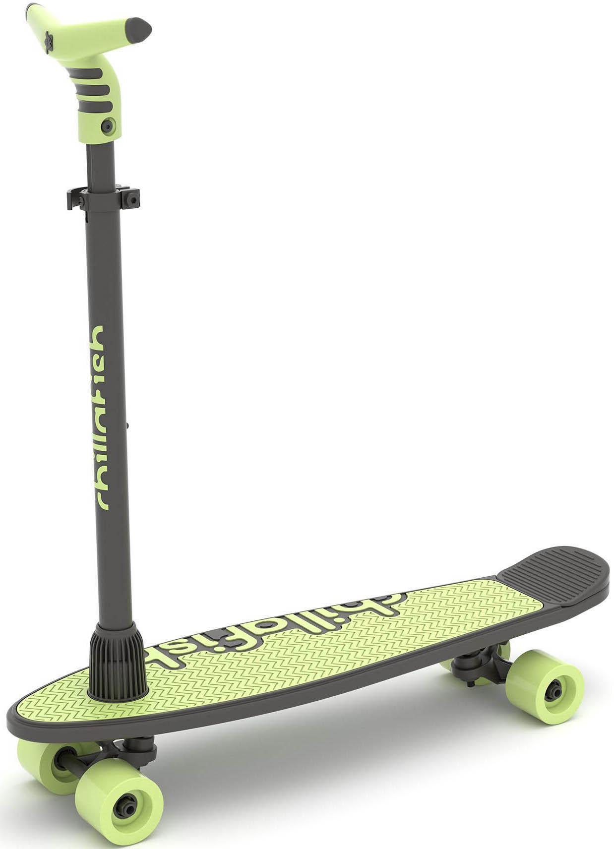 The Chillafish SkatieSkootie is a 4-wheeled customisable skateboard and lean-to-steer scooter all in one. The 4-wheel elongated wheelbase and the detachable stability handlebar are developed for easy control, making it perfect for younger children to safely learn to balance and skate.