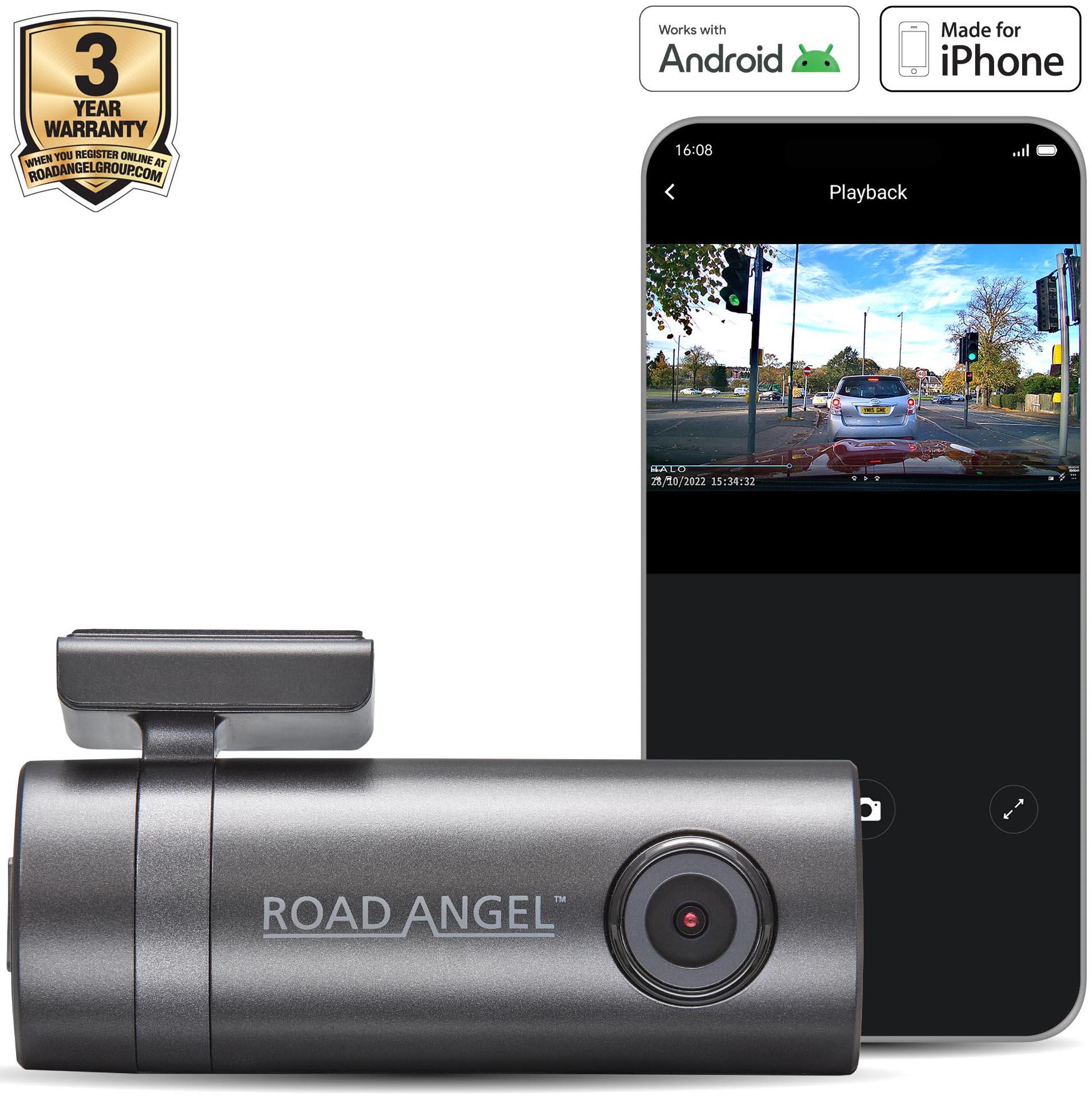 Road Angel Halo Go 2 Dash Cam – 2K 1296p HD, Automatic Parking Mode & Winter Protection – (USB C)