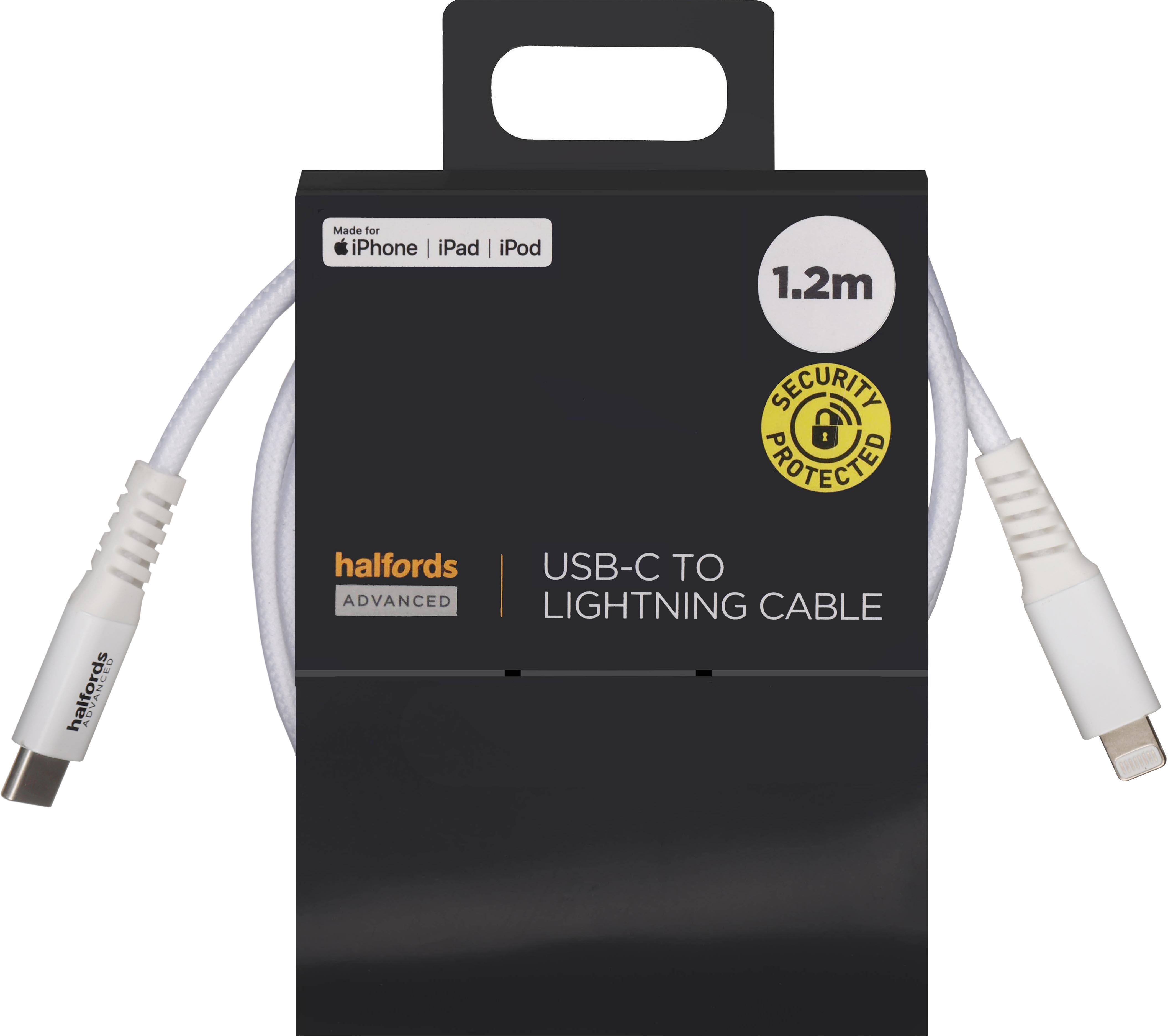 The Halfords USB-C to Lightning 1.2m Cable (White) provides fast and reliable charging and data transfer for a wide range of Lightning-enabled devices. Its durable metal head ensures long-lasting performance and safety even at low temperatures, while the smart power supply and PD (Power Delivery) function support up to 20V/3A (60W) for rapid charging. Combining durability, efficiency, and sleek design, this cable is perfect for keeping your devices powered and connected wherever you go.