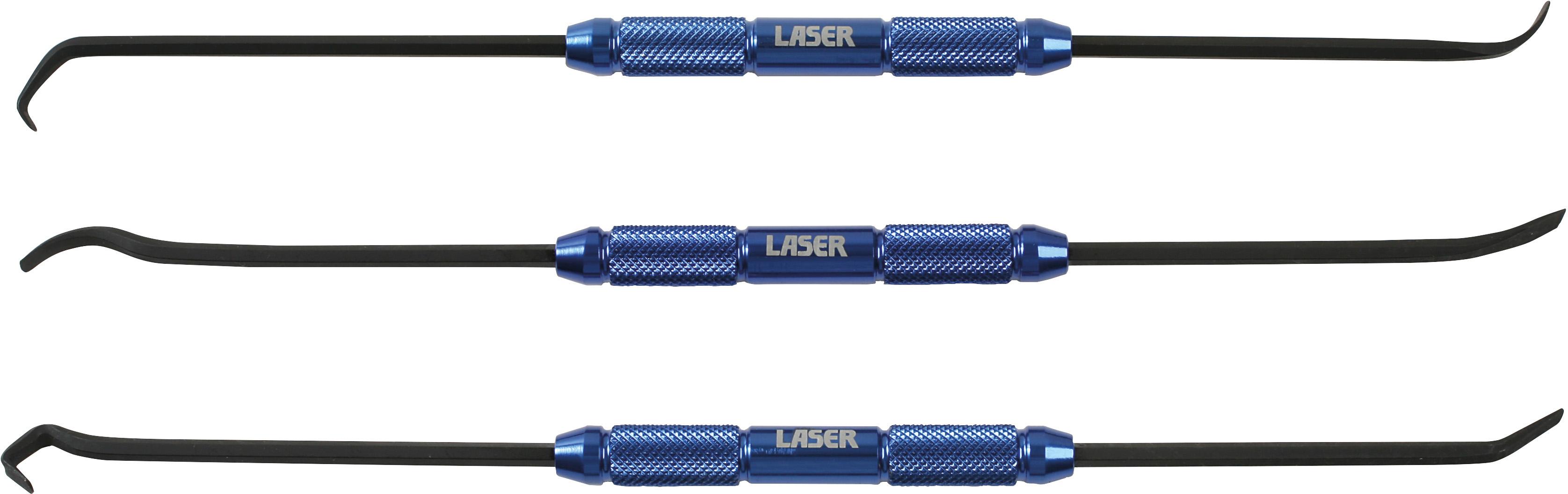 A 3 piece, double ended mini pry bar set provides a range of end profiles allowing easy access and removal of difficult to reach O rings.