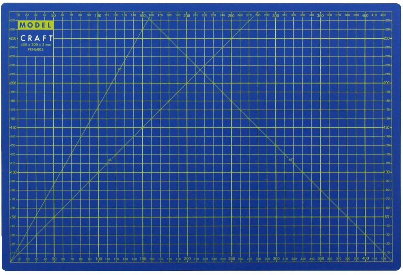 Modelcraft cutting mats are constructed from a 3 layer PVC mat in sandwich structure that ensures no cracking or warping. The non-slip surface of base holds paper firmly and prevents blade run and cutting error. The use of a cutting mat preserves the life of blades and encourages accurate cutting.
