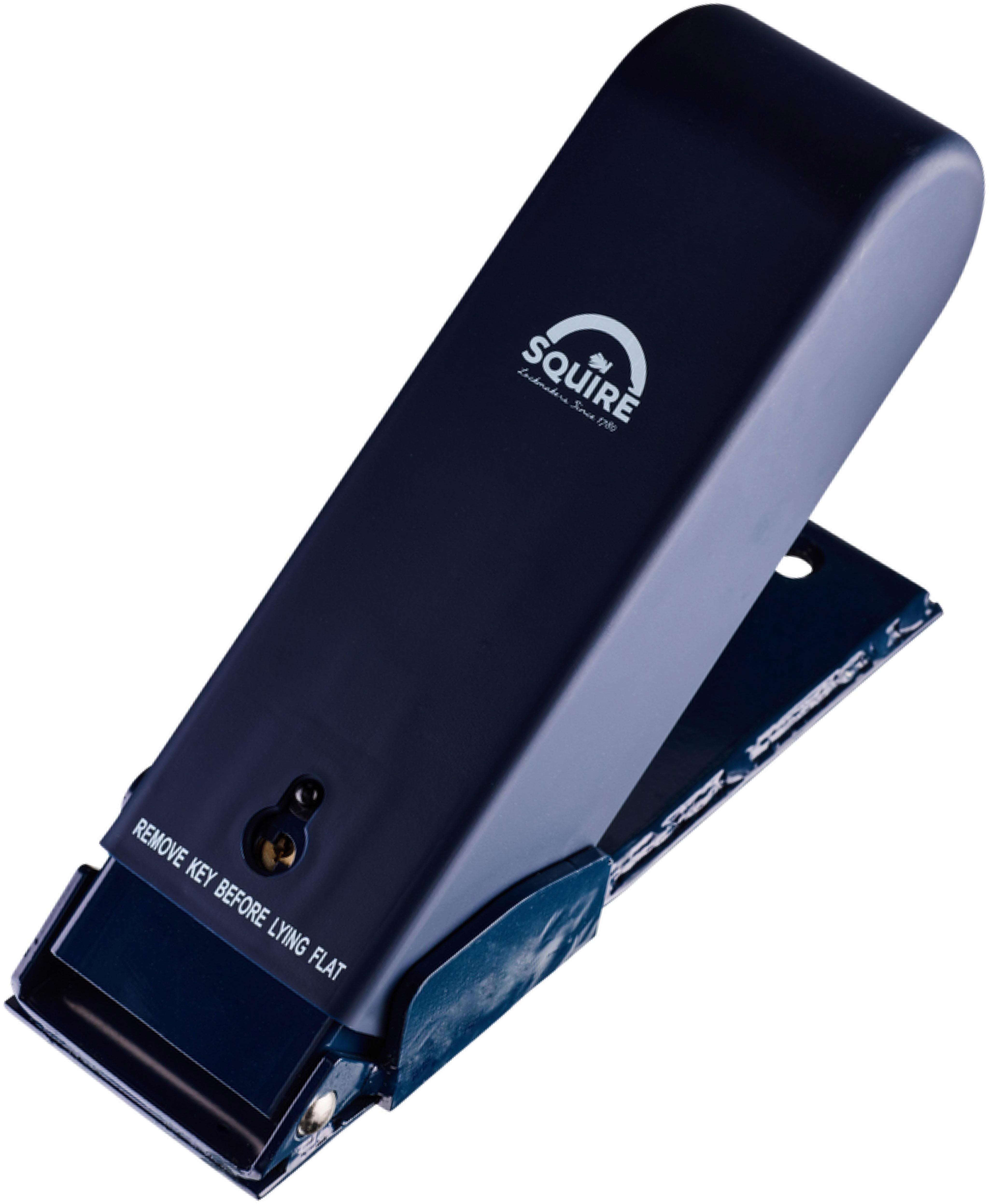Squire Garage Defender 5 lock for up and over doors, easy operation, when opened folds flat onto the floor to allow easy access to the garage. Supplied with all fixings, sold secure domestic bronze accredited. Supplied with two keys, 5 pin cylinder, patented.