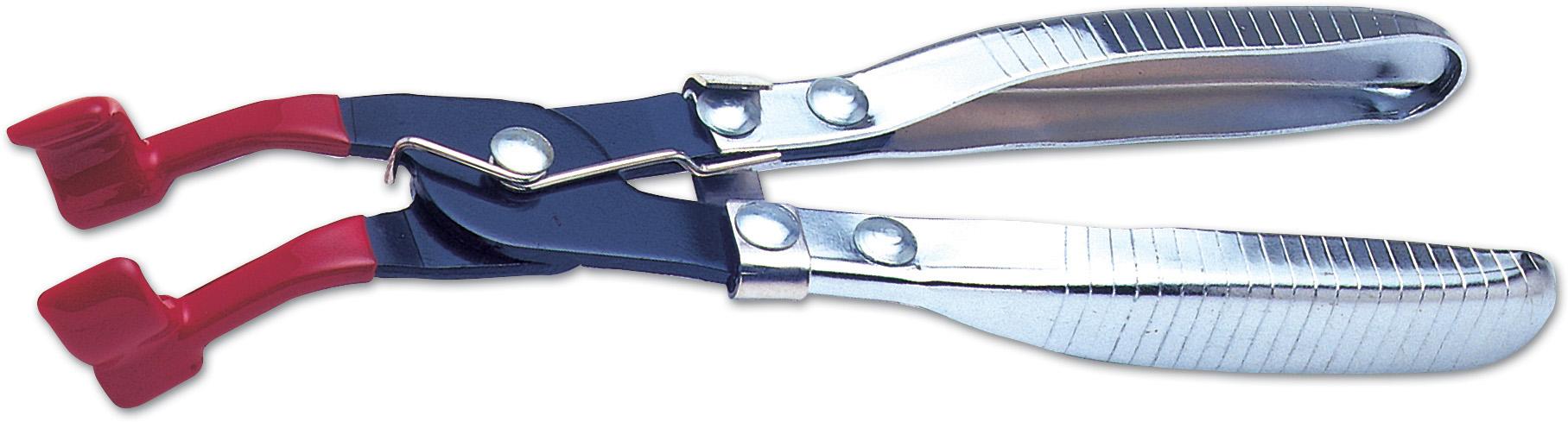 Specialist pliers designed for removing spark plug insulation boots. The jaws have non-marking plastic tips and are shaped to cradle the boot for the safe removal of even stubborn insulation boots. The pliers have long-handles and 45° offset jaws to access hard to reach areas. High quality tool with spring loaded handles for effortless spark plug maintenance.
