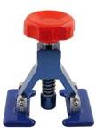 Manual dent puller with spring action center bolt allows for pulling and repairing minor dents on vehicles.