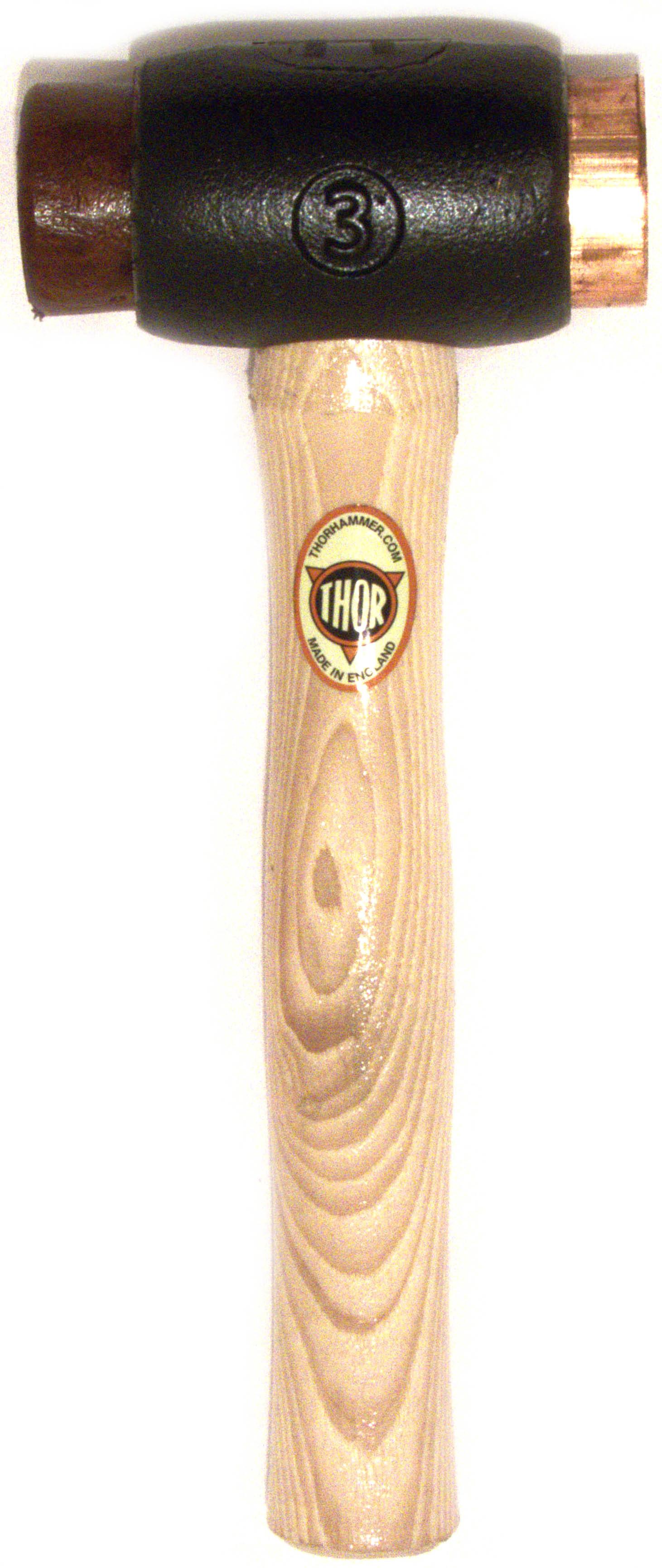• Ductile iron head with one electrolytic and one compressed hide face fixed on a polished wood handle