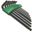 Professional quality keys made from fully hardened Chrome-Vanadium steel. All keys from 1/8in have chamfered edges to prevent damage to blade and fittings. Long arm ball end design allows access to deep set screws or difficult to reach places at offset angles. The handy storage caddy ensures that the key set can be safely stored in pockets and toolboxes. The key sizes are clearly shown on the caddy.
