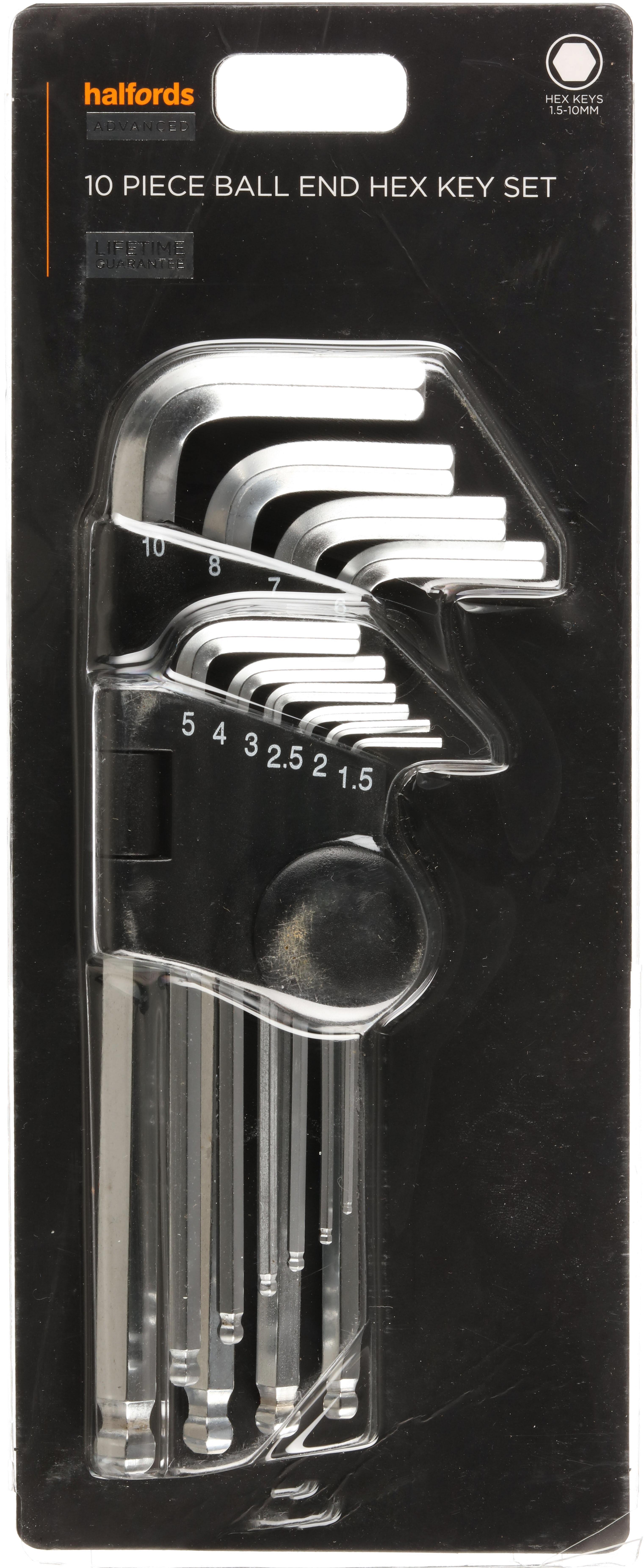 The Halfords Advanced 10 Piece Ball End Hex Key Set is a good value, high quality set of Hex keys, with a great selection of the most common metric sizes.
