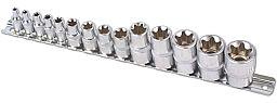A set of mixed drive Star* profile sockets, from E4 to E24, manufactured from satin finish chrome vanadium.